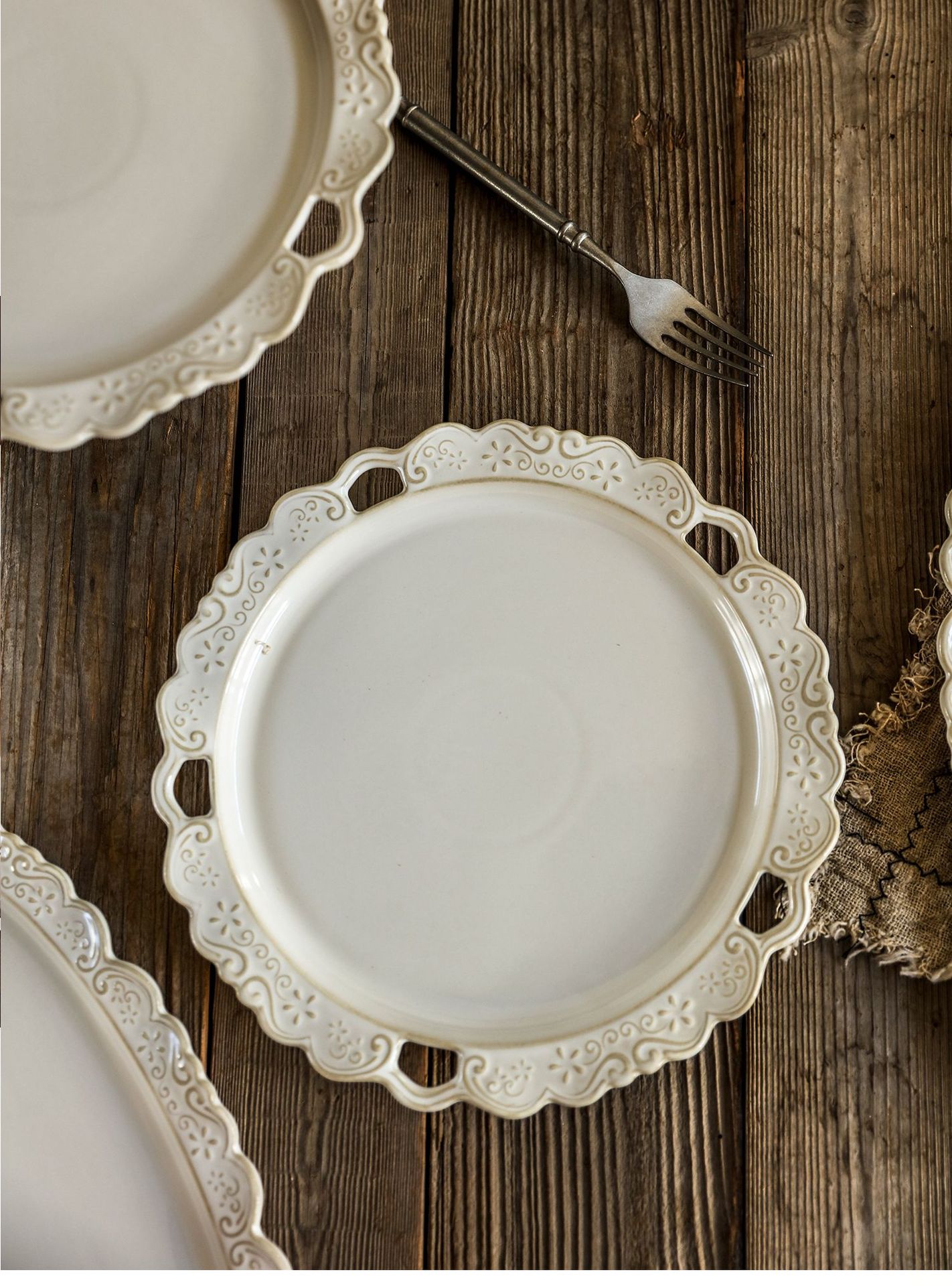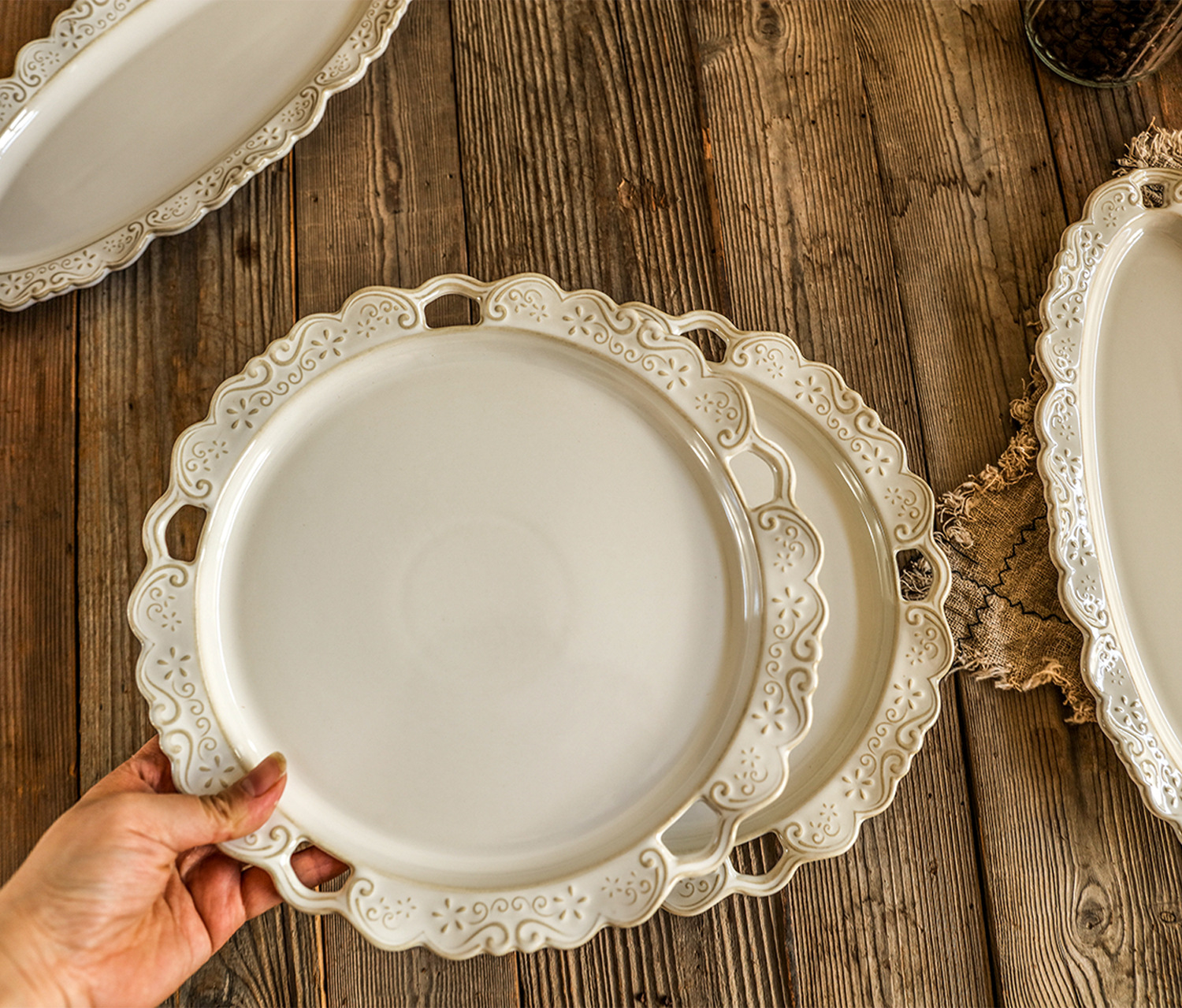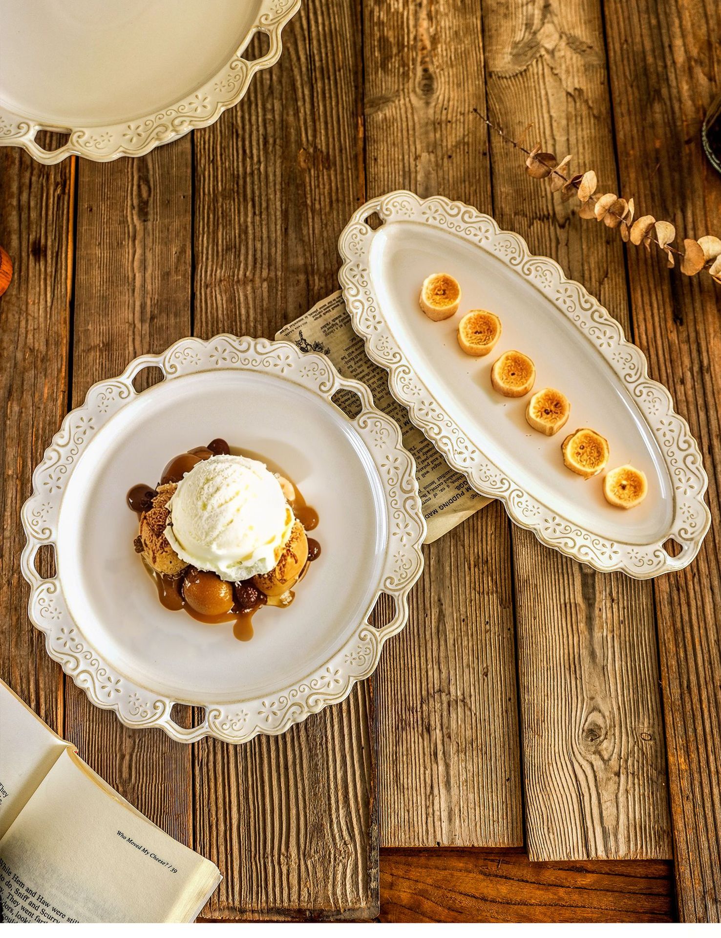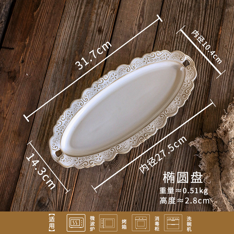 가벼운 고급 세라믹 스테이크 서양 음식 접시 가정용 접시 디저트 스시 접시 복고풍 창조적 인 양각 접시 과일 스낵 접시