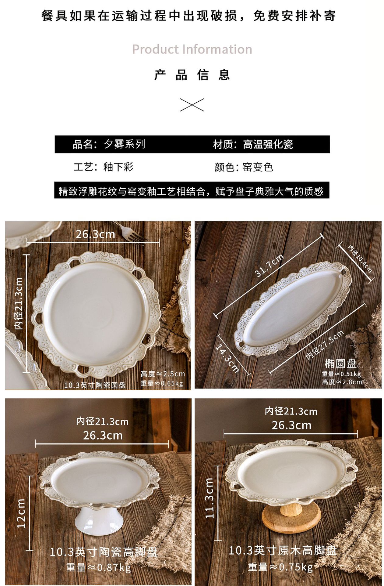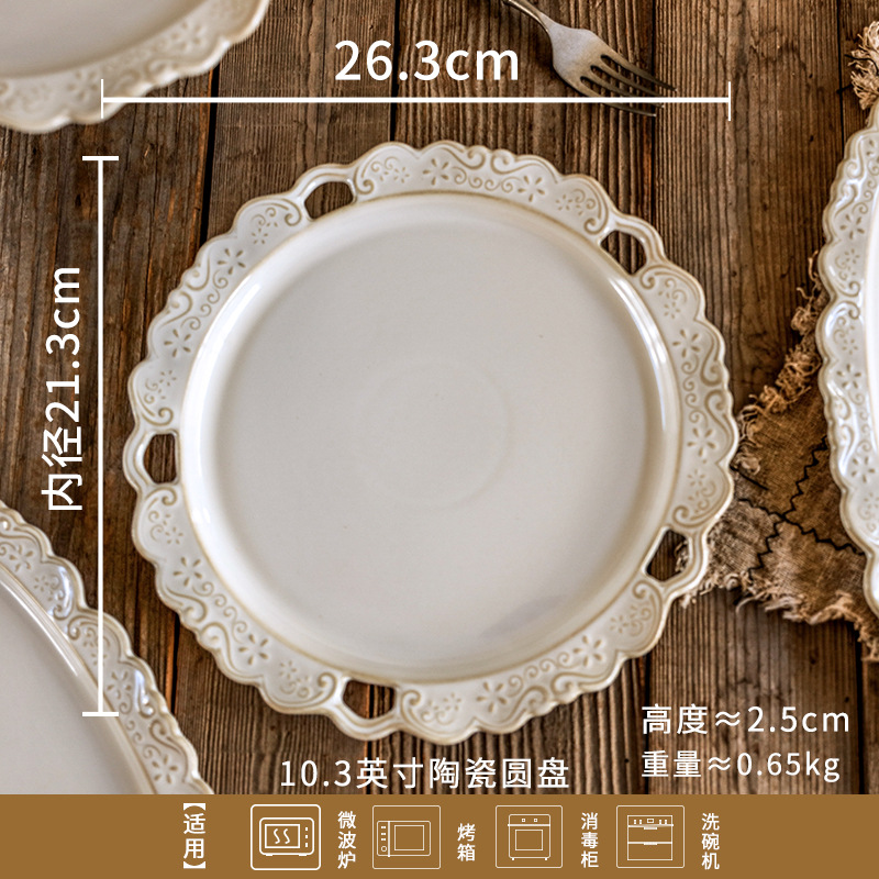 가벼운 고급 세라믹 스테이크 서양 음식 접시 가정용 접시 디저트 스시 접시 복고풍 창조적 인 양각 접시 과일 스낵 접시스토어 가기