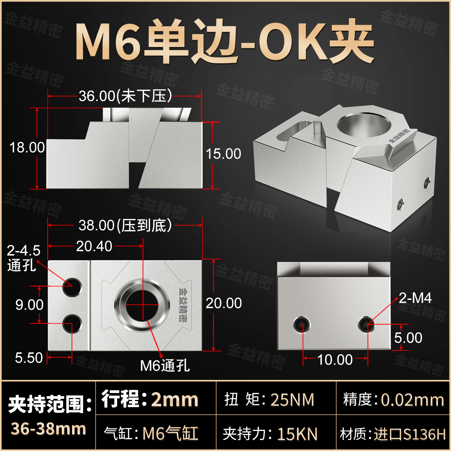 • 확장 단면 M6(담금질 S136H 금형강 소재)