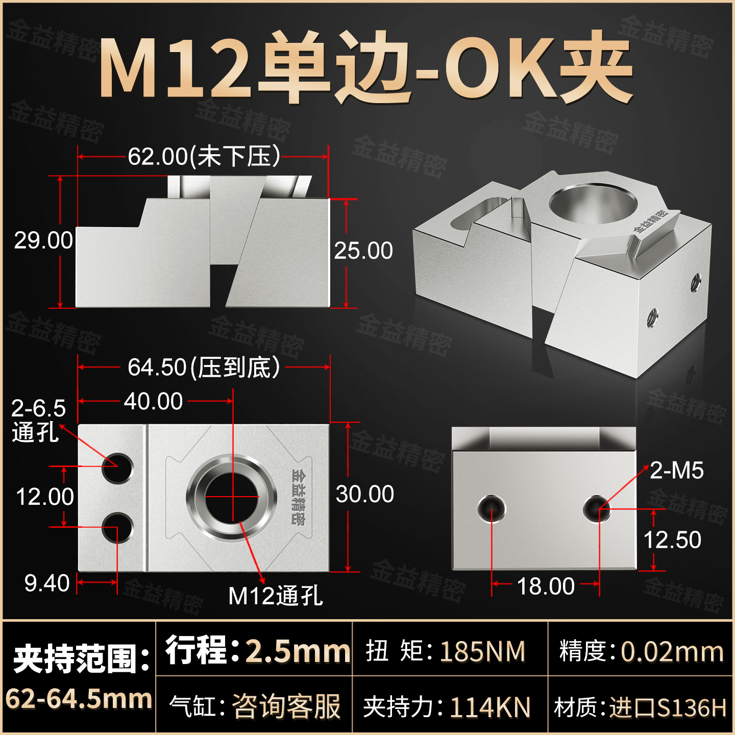 • 확장 단면 M12(담금질 S136H 금형강 재질)