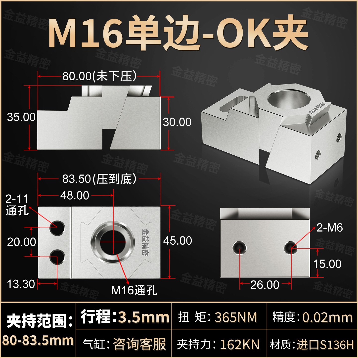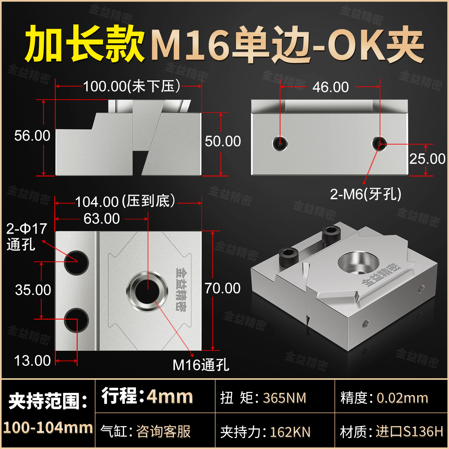 • 확장 단면 M16(담금질 S136H 금형강 재질)