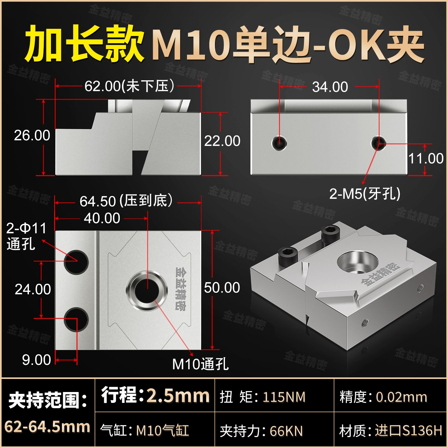 • 확장 단면 M10(담금질 S136H 금형강 재질)