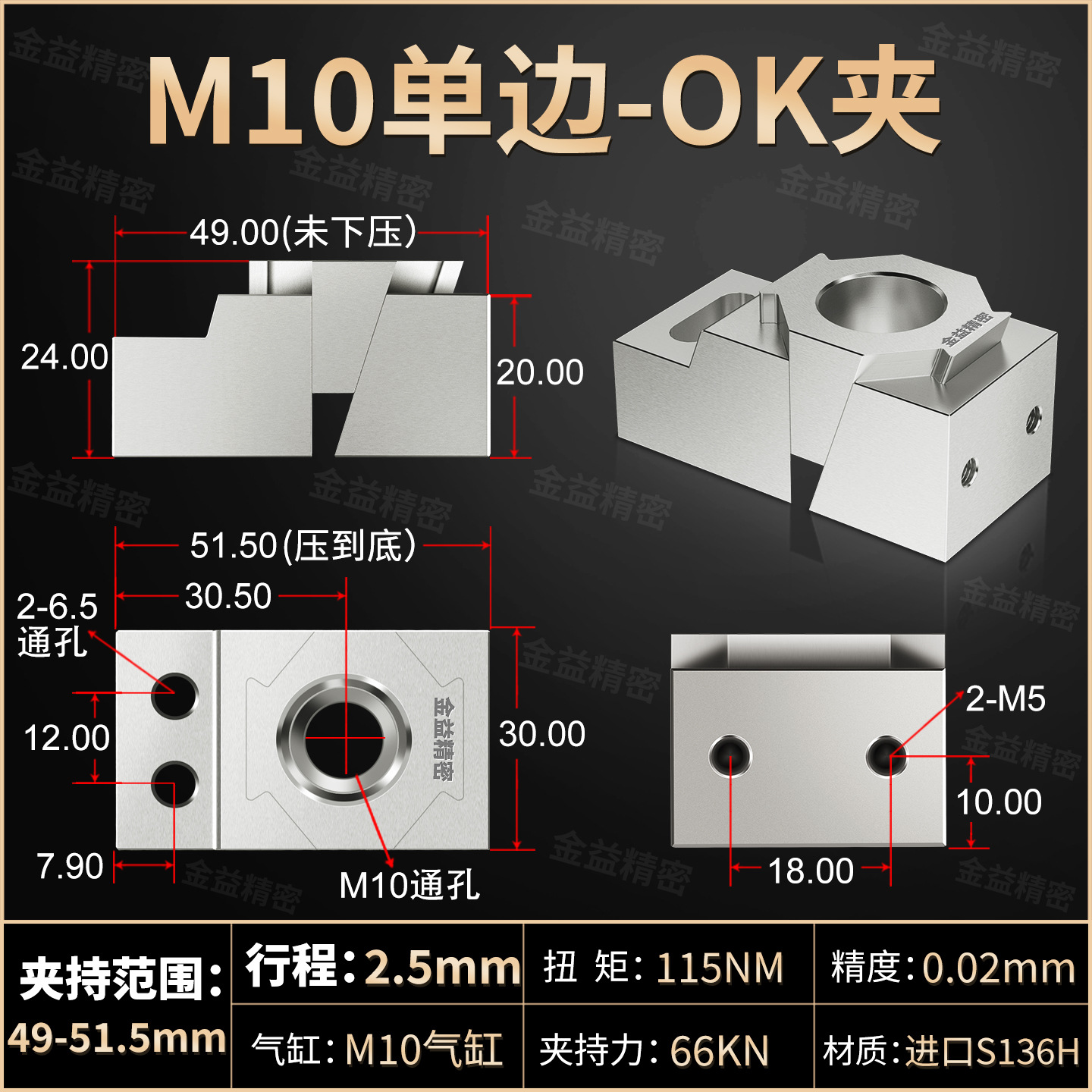 • 단면 M10 (S136H 금형강 담금질 처리)