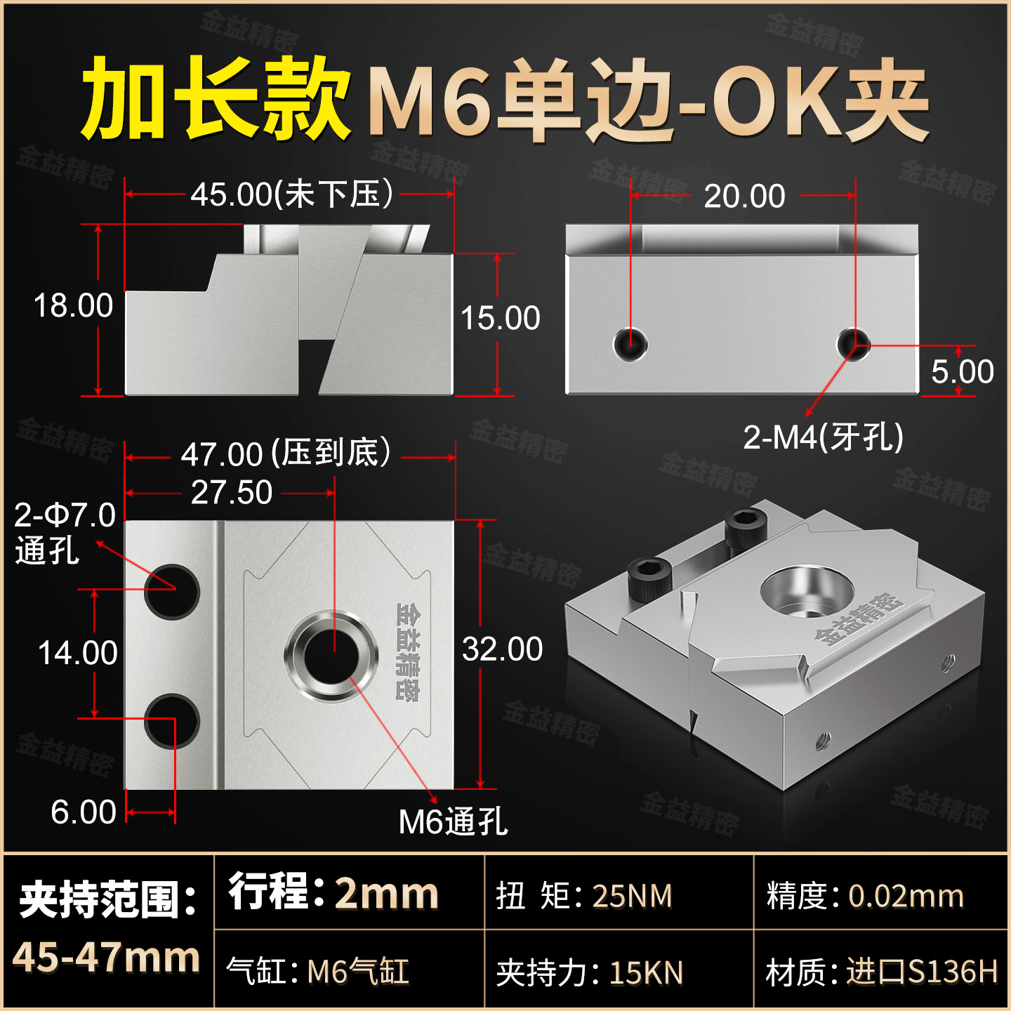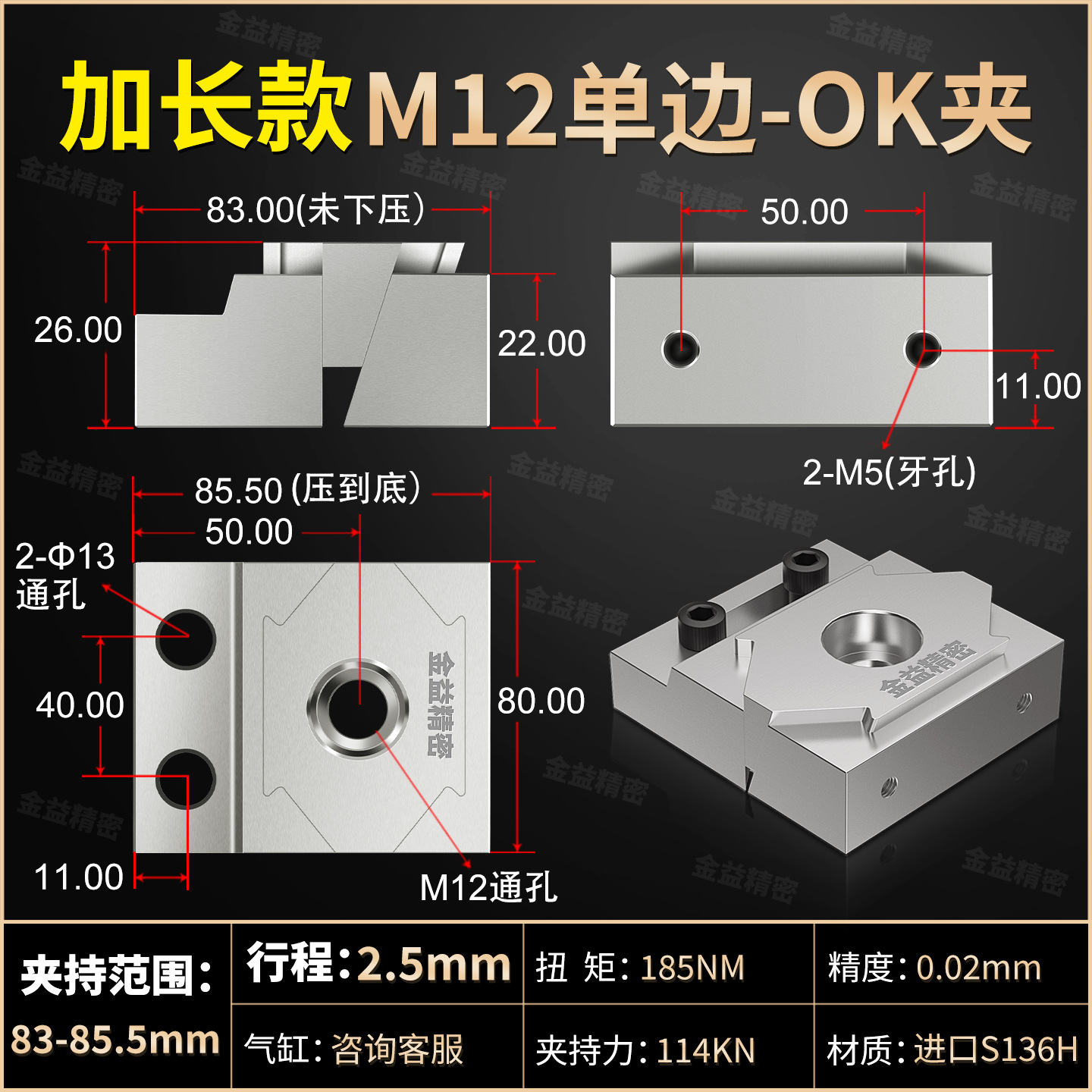 단방향 OK 클램프 CNC 머시닝 센터 병렬 측면 단방향 확장 고정 클램핑 블록 두꺼비 펜치 테이블 바이스