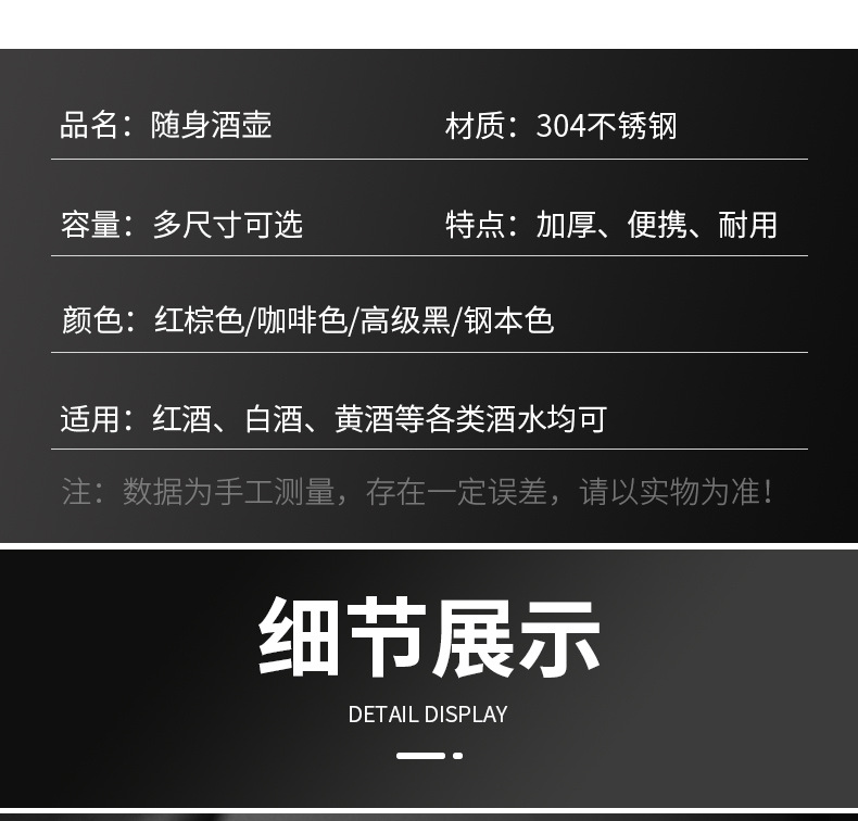 야외 휴대용 스테인레스 스틸 소형 와인 병, 미니 플랫 와인 병, 와인 디스펜서, 고급 와인 병