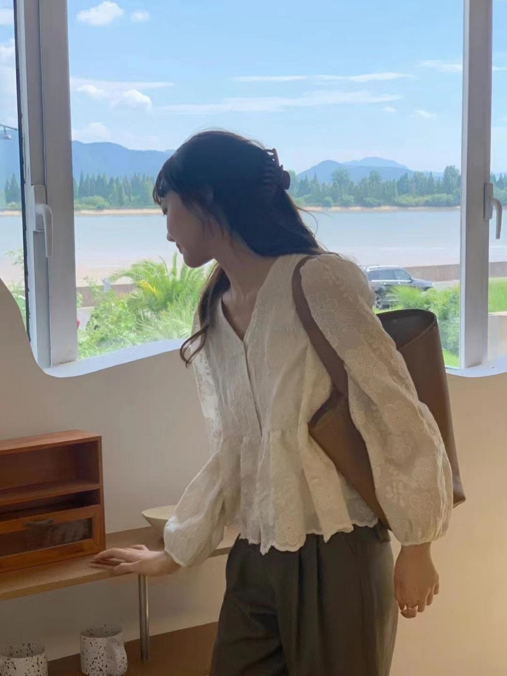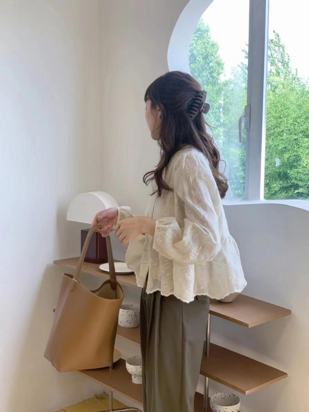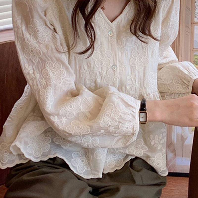 2023 봄과 가을 새로운 프랑스 스타일 달콤한 레이스 셔츠 여성의 세련된 탑 루즈 칼라 긴팔 인형 셔츠스토어 가기