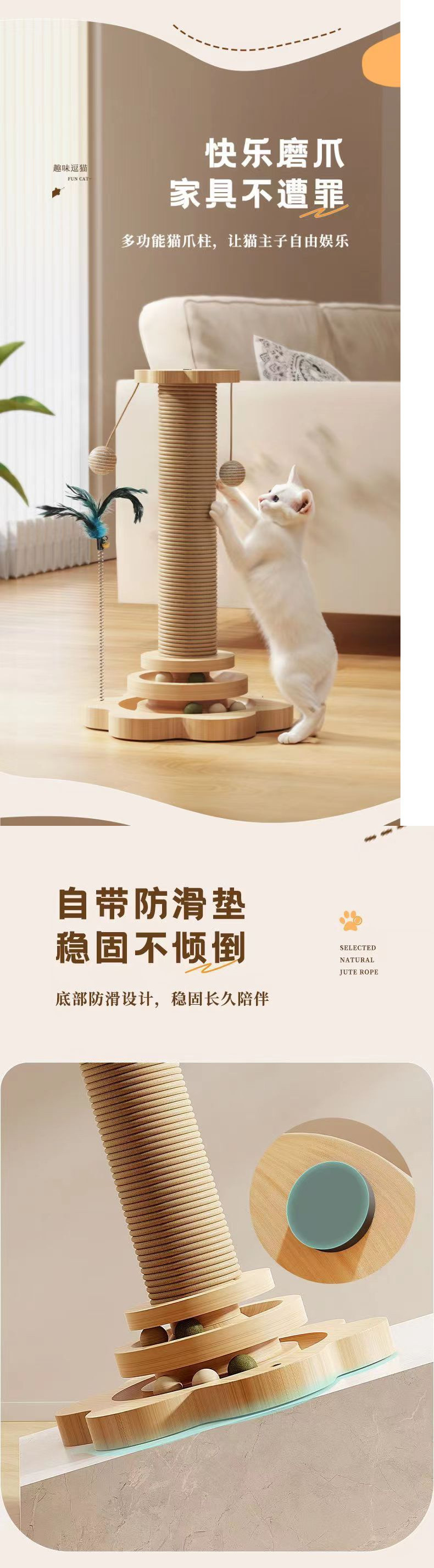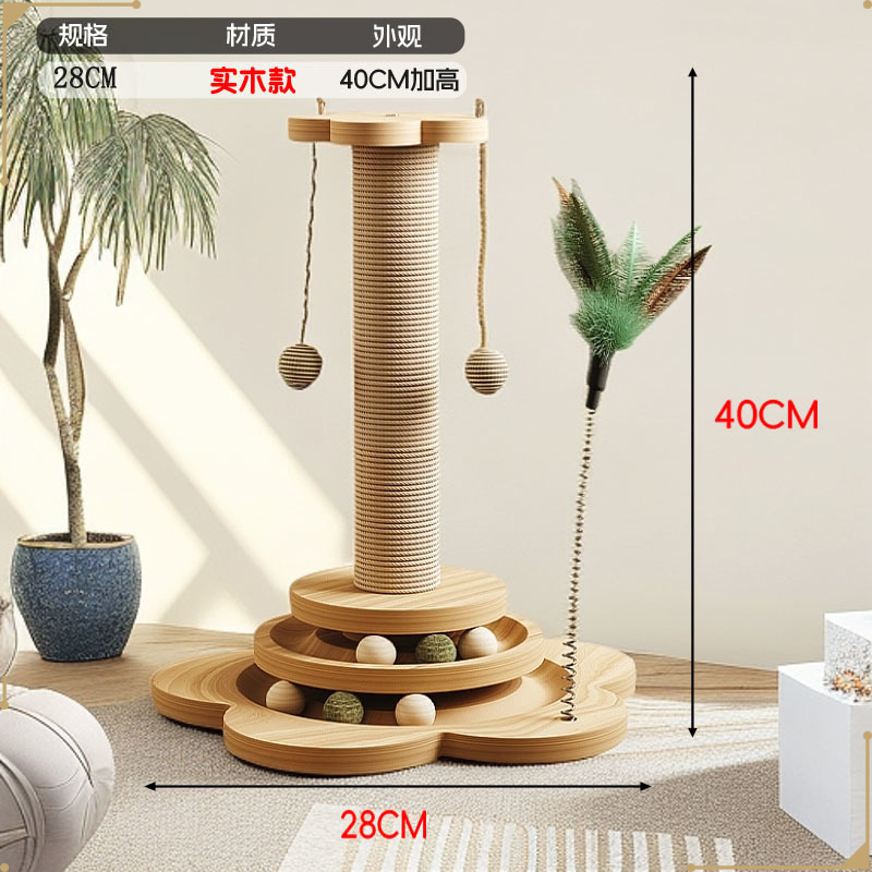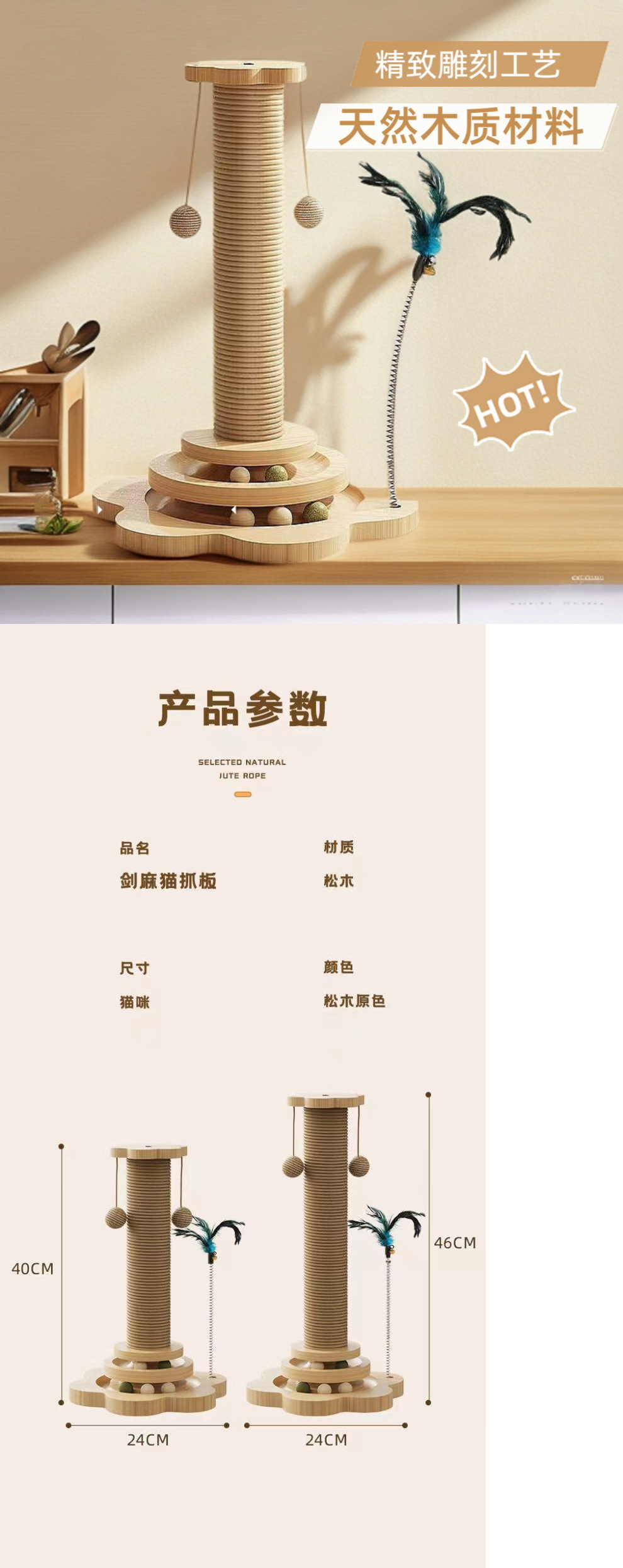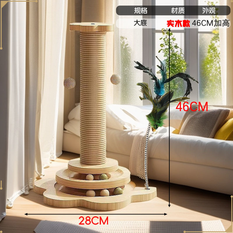 • 소나무 강화 턴테이블 그랩 포스트 46cm + 고양이 재미있는 스틱