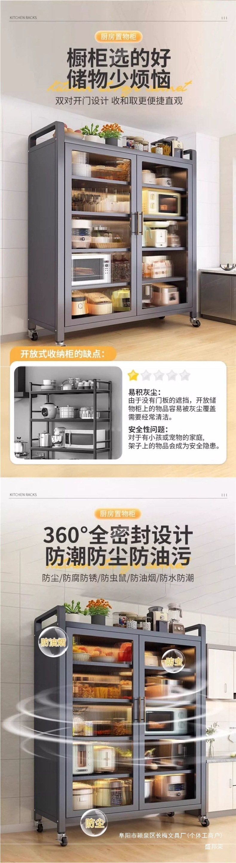 주방 수납 선반, 가정용 다층 양문형 다기능 수납 캐비닛, 바닥에서 천장까지의 배수 및 방진 수납 캐비닛, 찬장