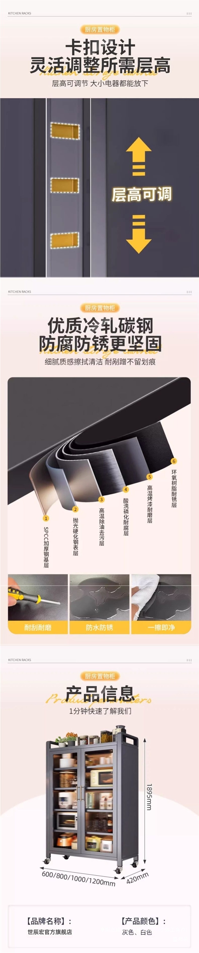 주방 수납 선반, 가정용 다층 양문형 다기능 수납 캐비닛, 바닥에서 천장까지의 배수 및 방진 수납 캐비닛, 찬장스토어 가기