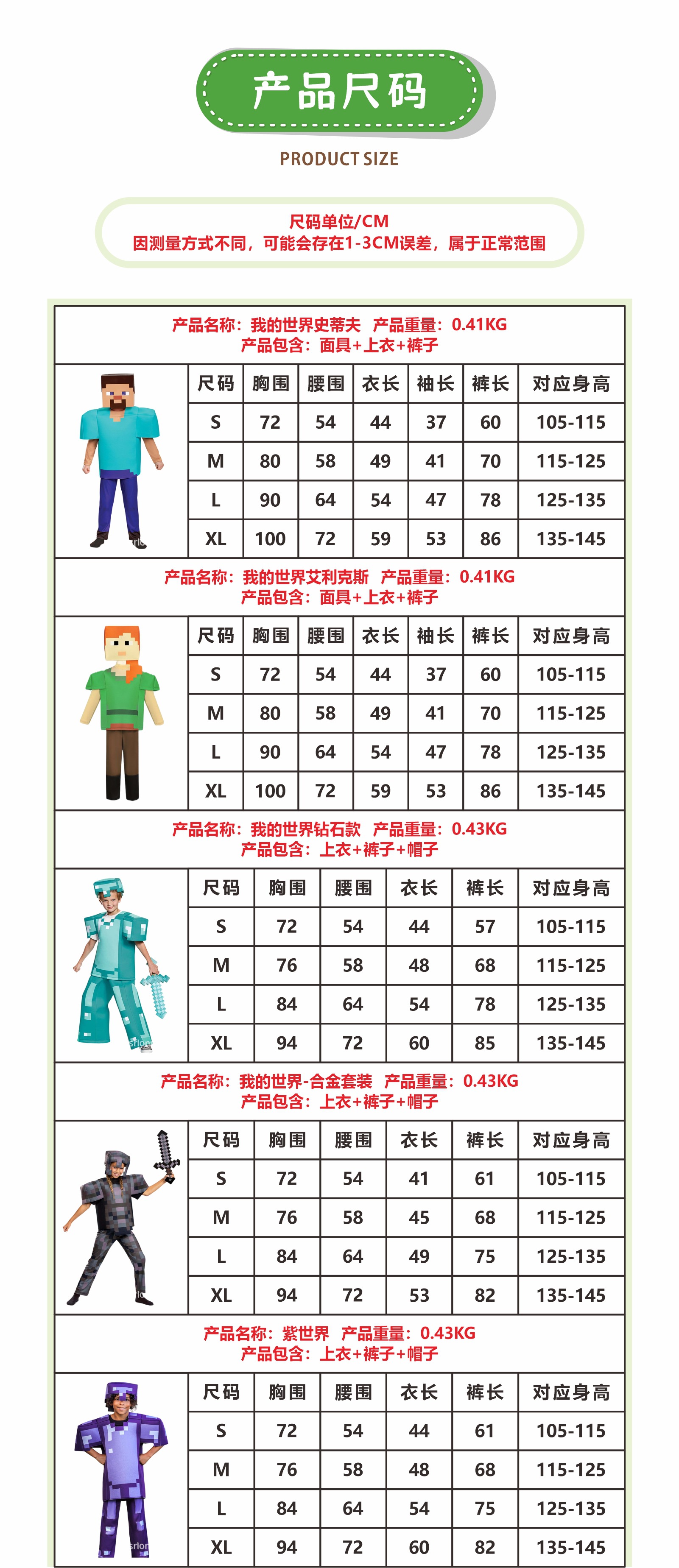 【신제품】가격 인하-마인크래프트 영화 MC 할로윈 의상 어린이 공연복 캐릭터 코스프레스토어 가기