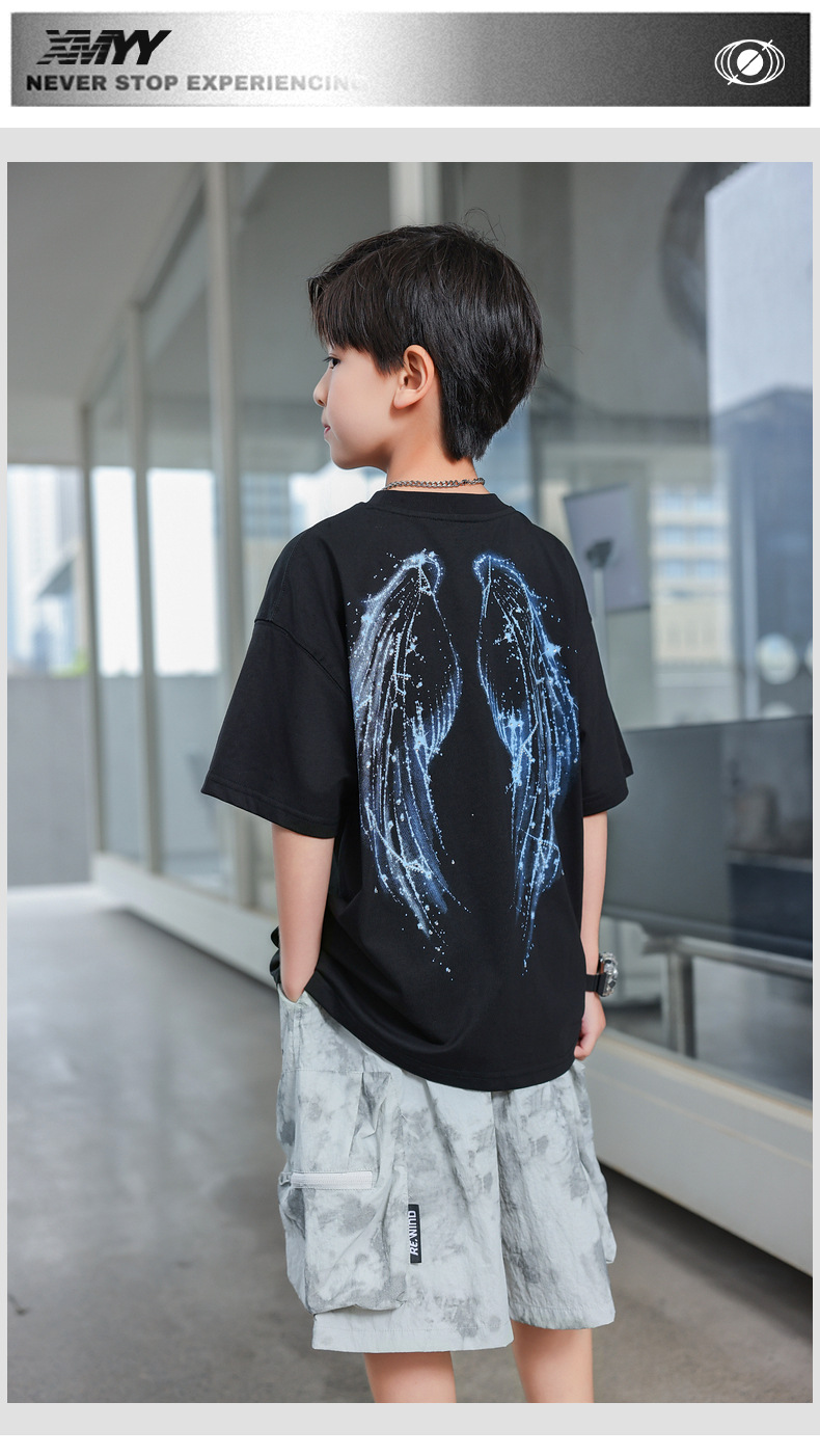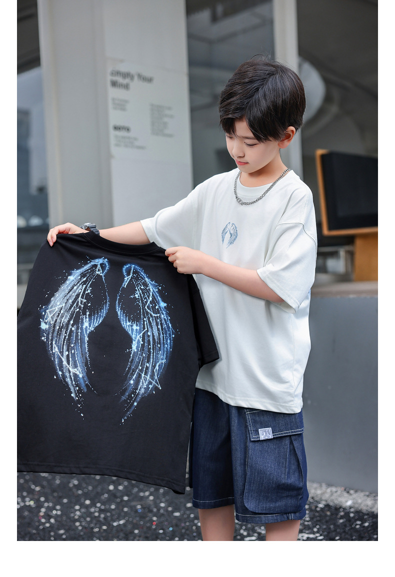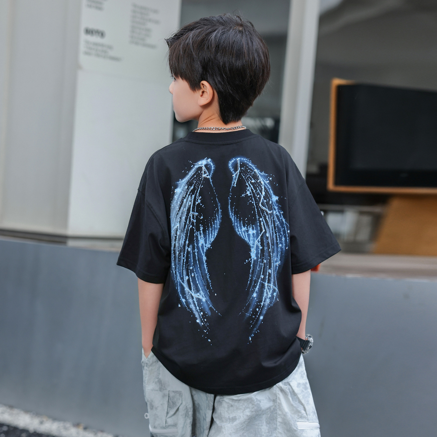 Huzhou Zhili 아동 의류 빛나는 인쇄 + 핫 다이아몬드 소년 반팔 팬더 Yuanyuan 여름 의류 아동용 멋진 티셔츠 도매스토어 가기