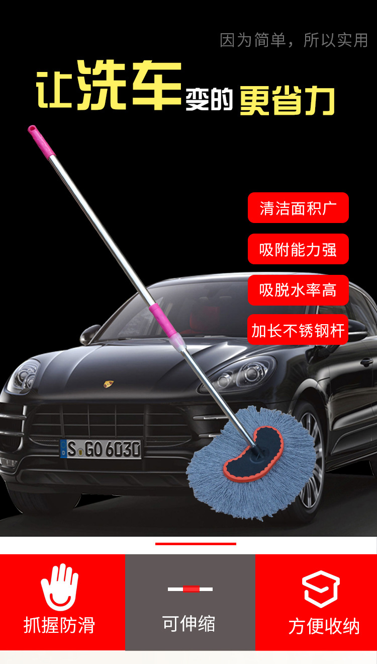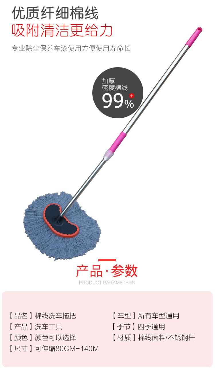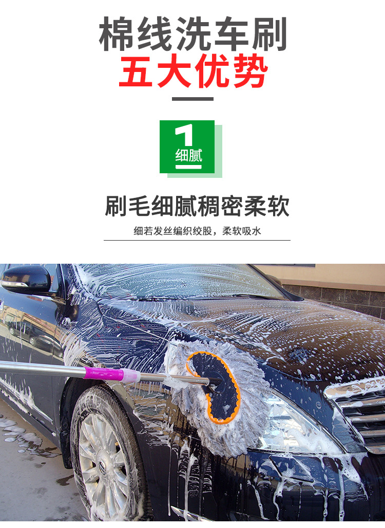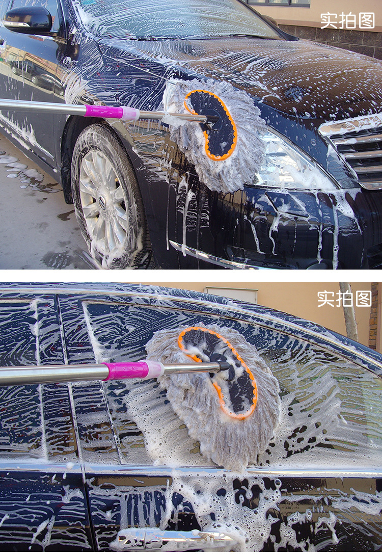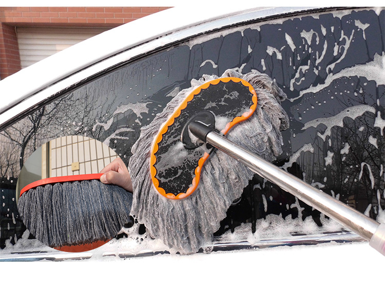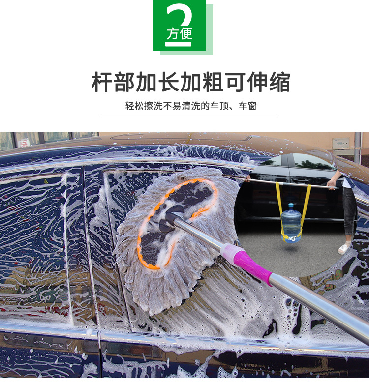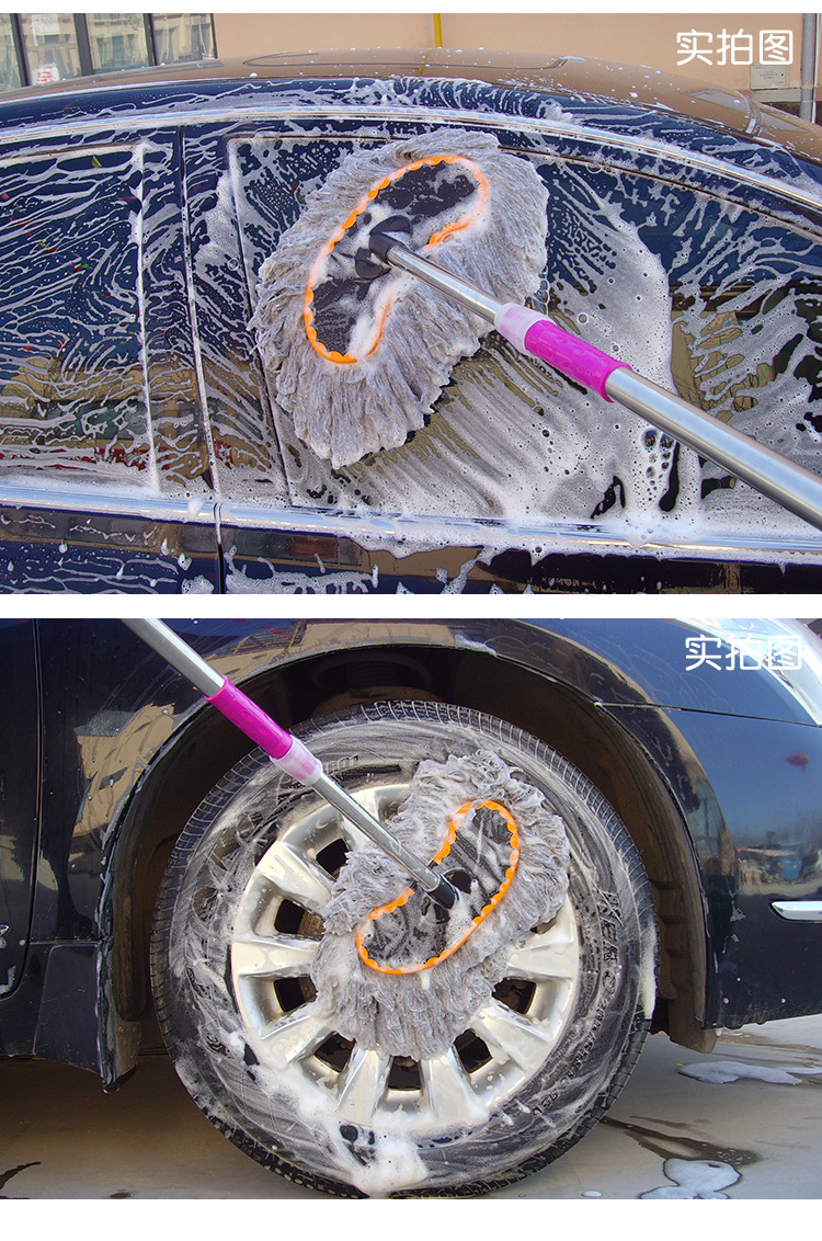 깨끗한 물 브러시 부드러운 자동차 울 롱 로드 스테인레스 스틸 걸레 세차 브러시 롱 핸들 텔레스코픽