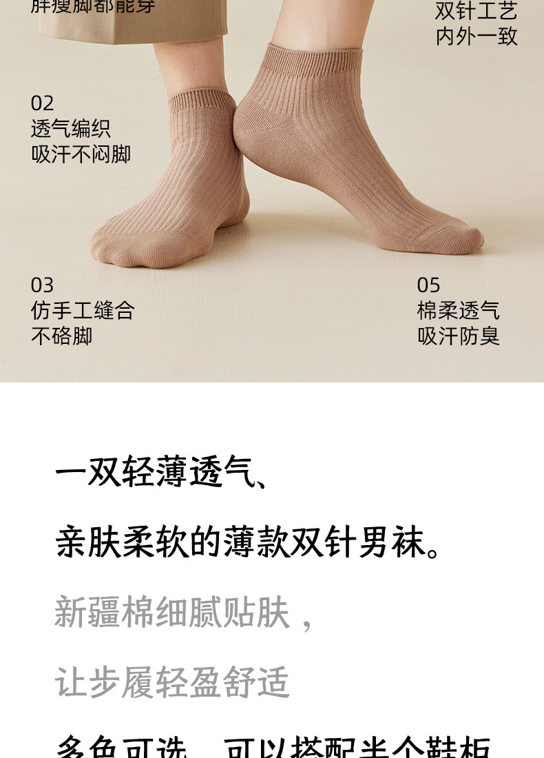 맞춤형 남성용 더블 니들 양말 봄 여름 순면 통기성 캐주얼 양말 항균, 땀 흡수, 탈취 및 힐리스 보트 양말스토어 가기