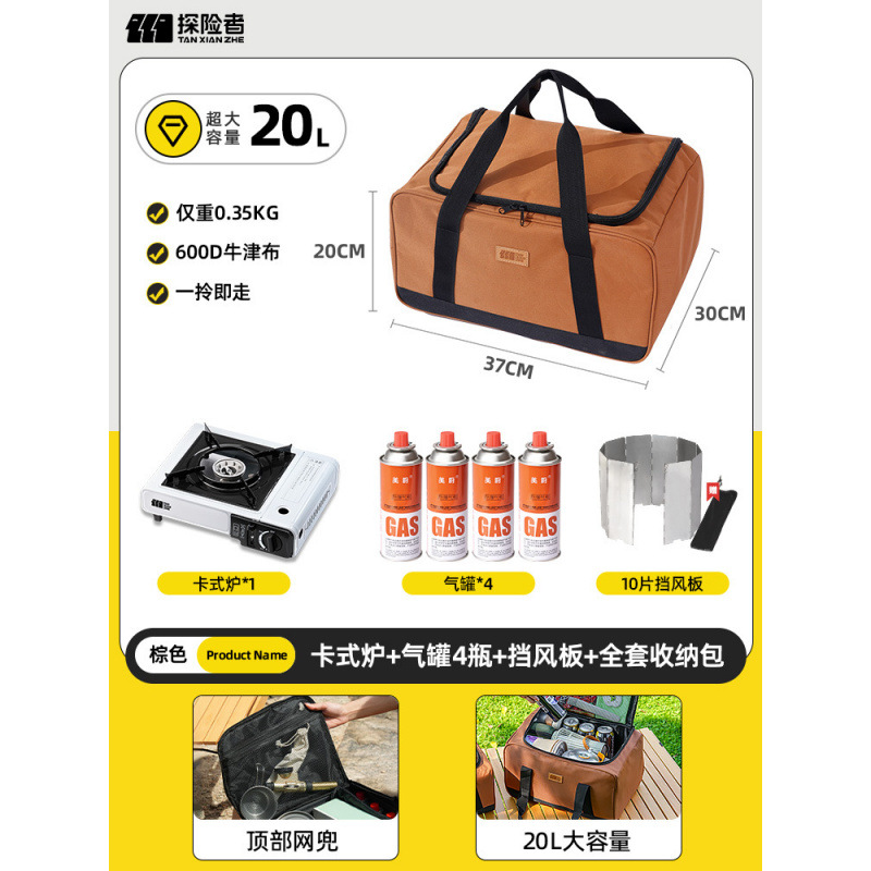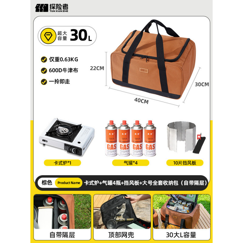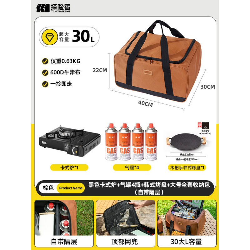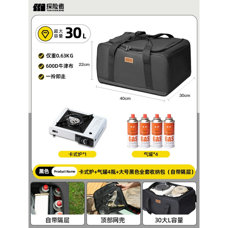 • 카세트 스토브 + 가스 탱크 + 대형 완전 보관 가방 (별도의 수납 공간 포함)
