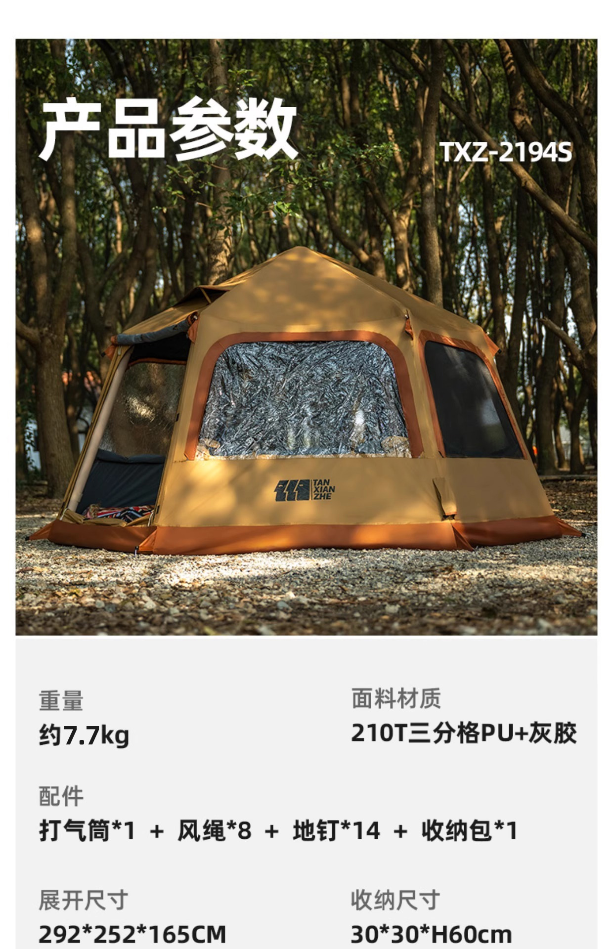 탐험가 자동 팽창식 텐트 야외 캠핑 밤새 폭우 방지 빠른 개방형 자외선 차단제 캠핑 휴대용 2194s