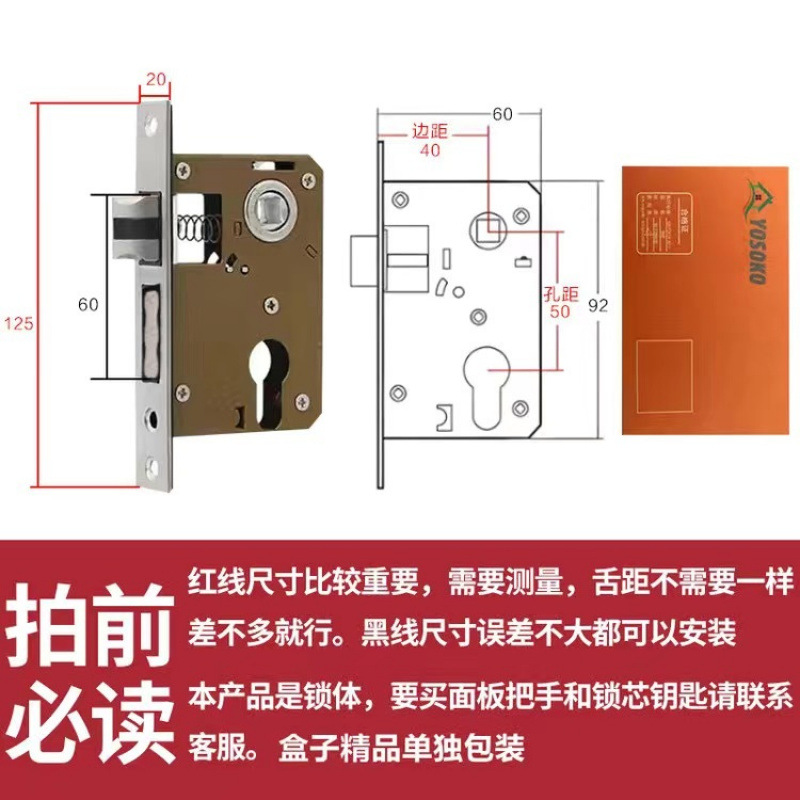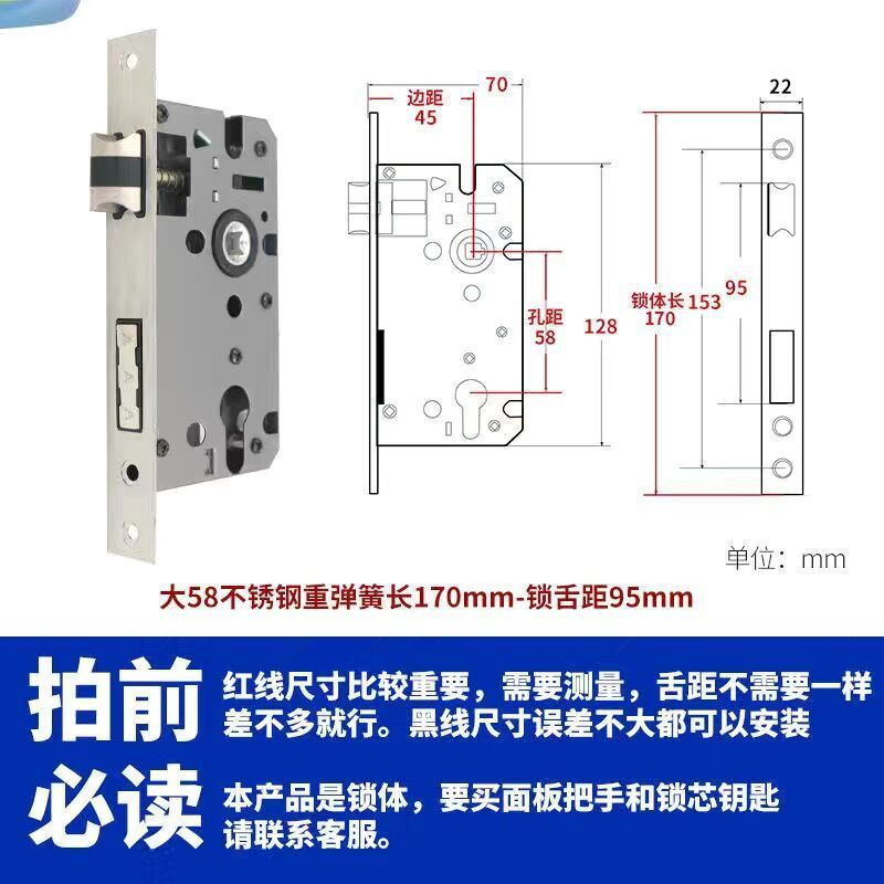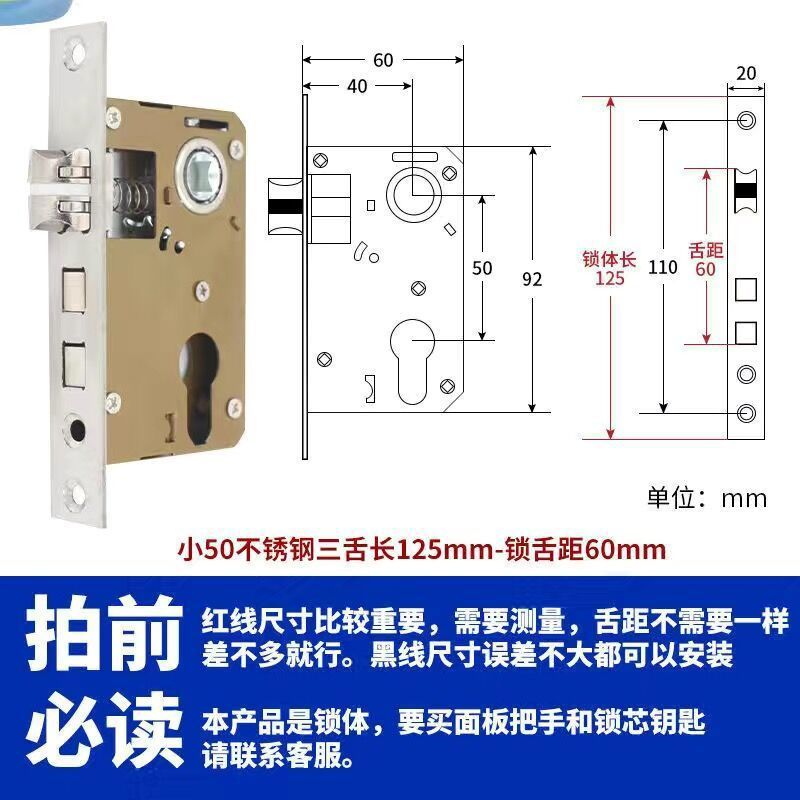 • ·별도의 자물쇠 본체 [실린더 키 없음] - 욕실 길이 58mm 욕실 자물쇠 본체 - 여백 40mm