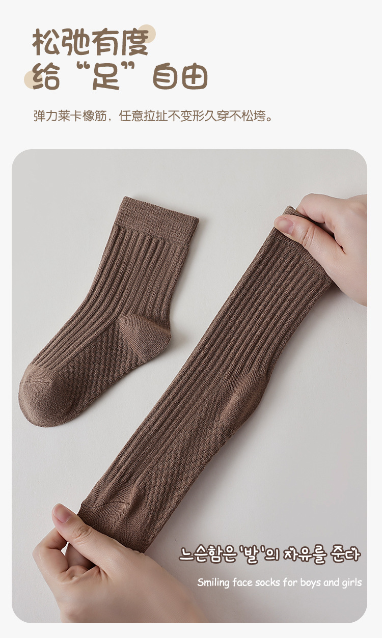 국경 간 클래스 A 빗질면 중간 튜브 어린이 양말 한국식 가을, 겨울 소년과 소녀를위한 다용도 스트라이프 아기 양말