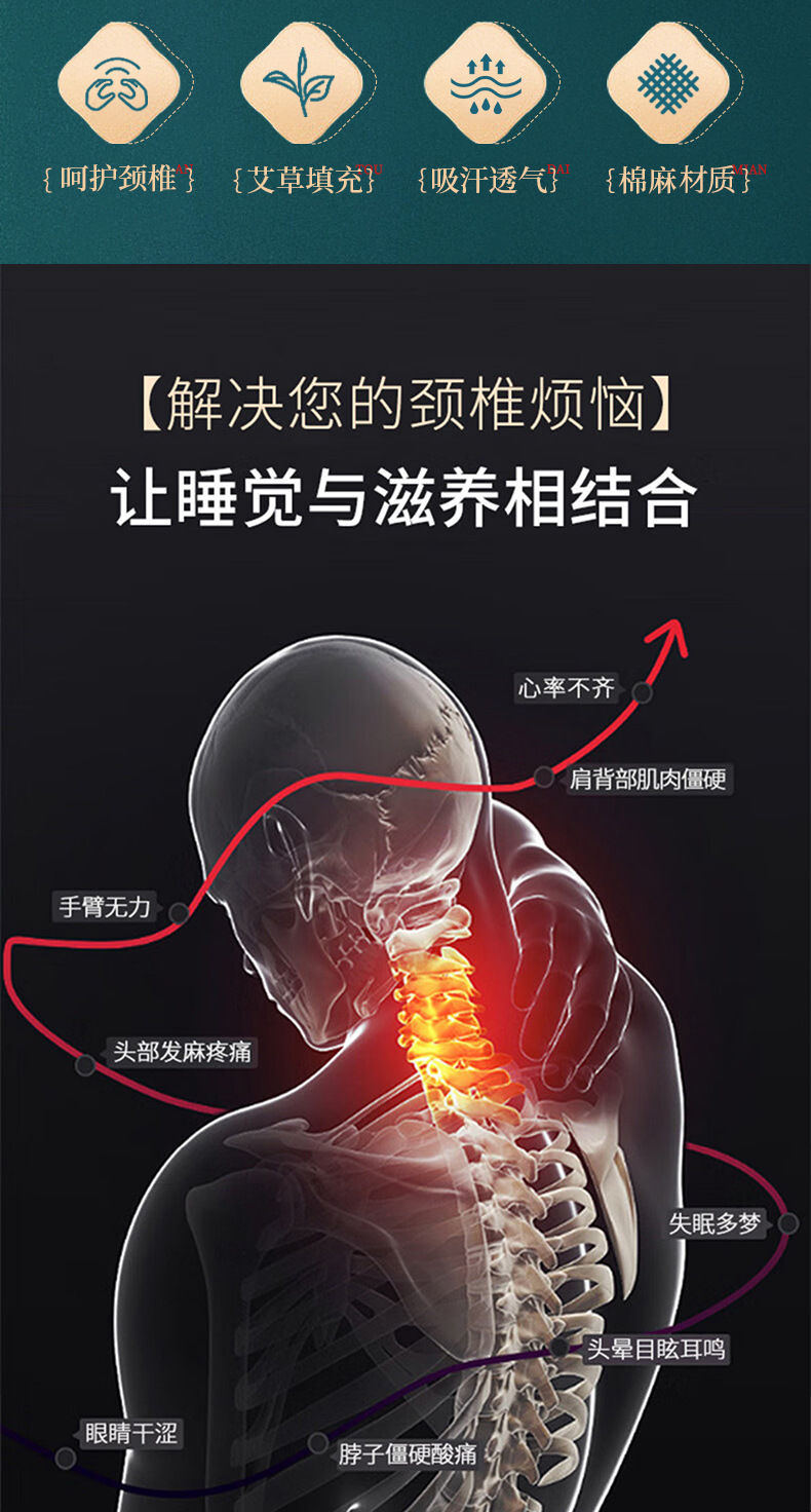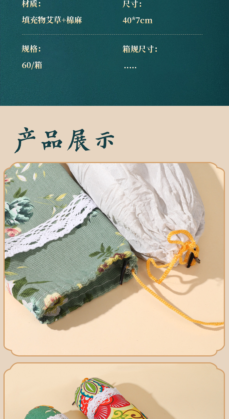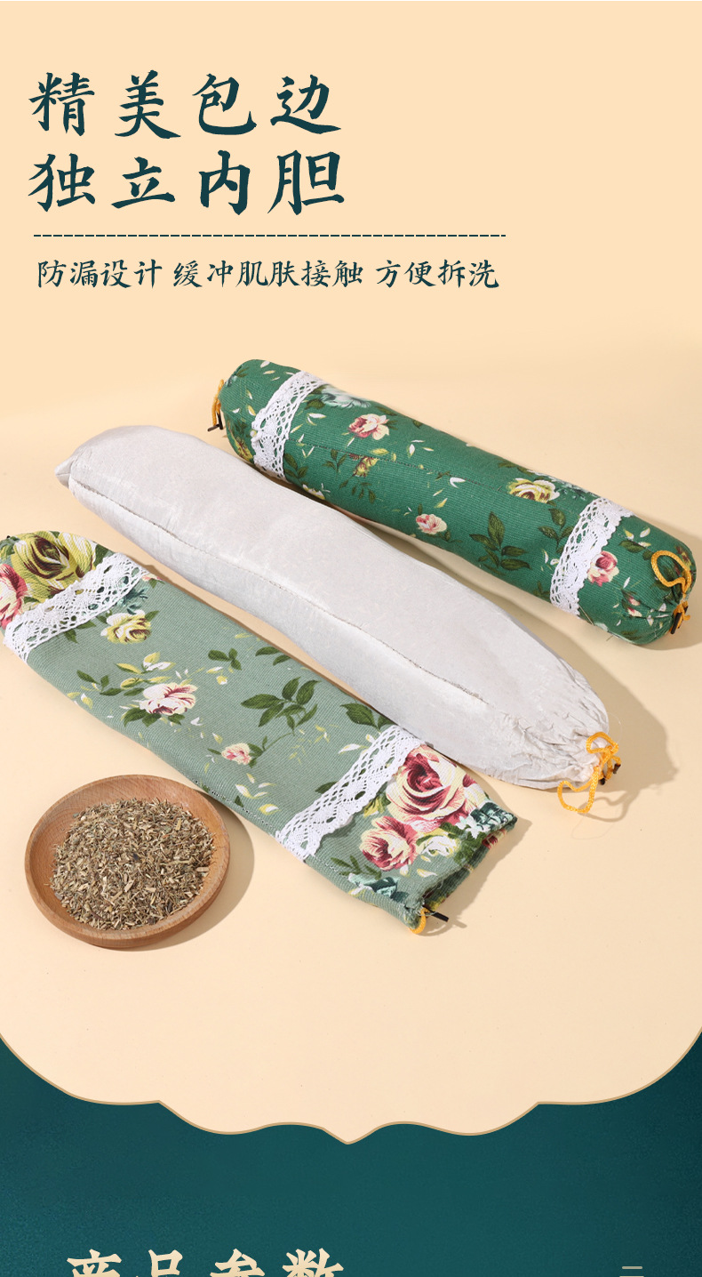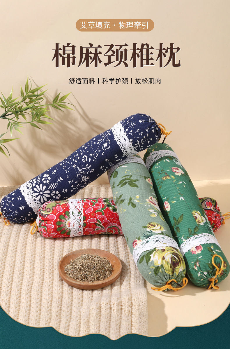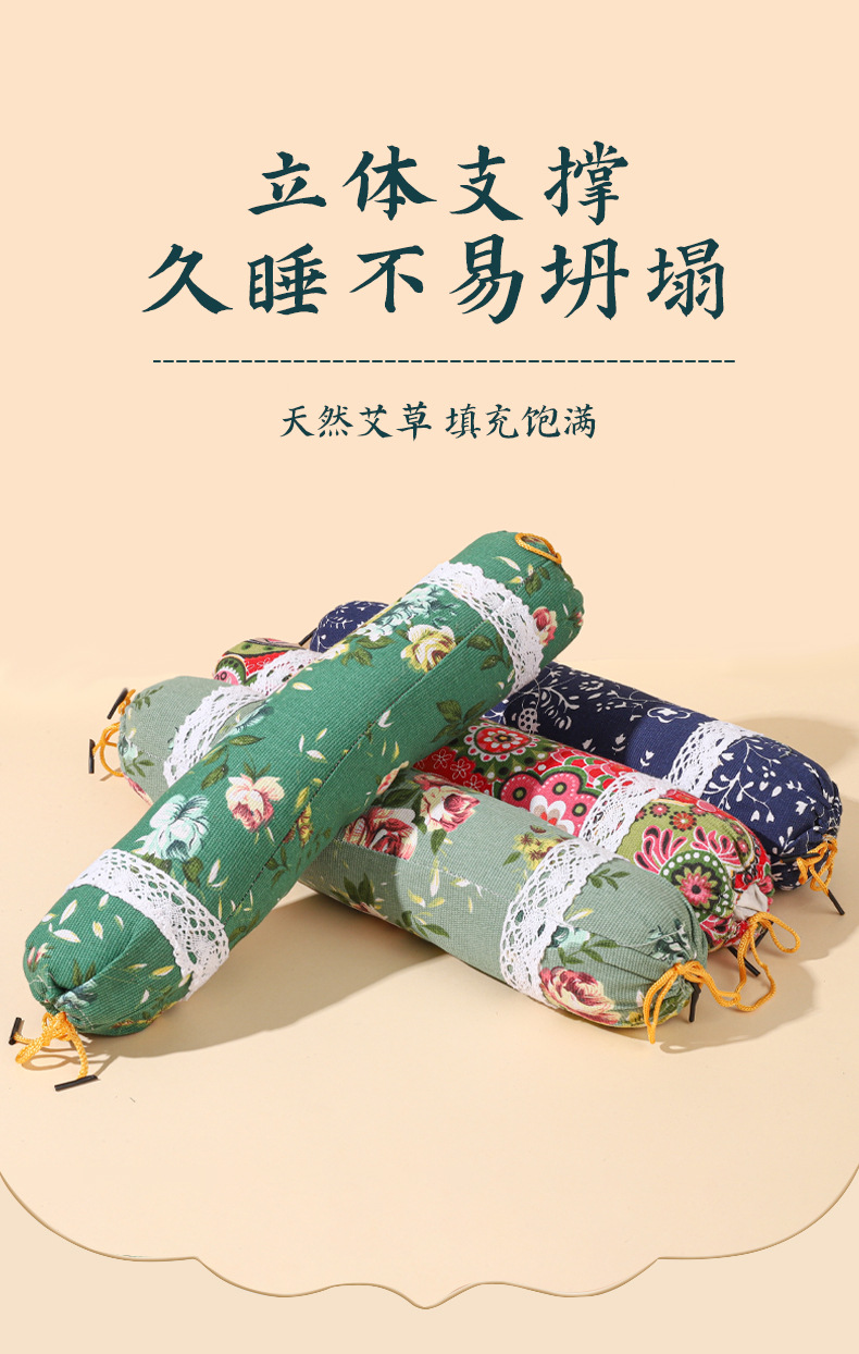 쑥으로 채워진 경추 경질 베개, 원통형 목 베개, 싱글 베개, 탈부착 및 세탁 가능한 면 및 린넨 건강 쑥 경추 베개스토어 가기