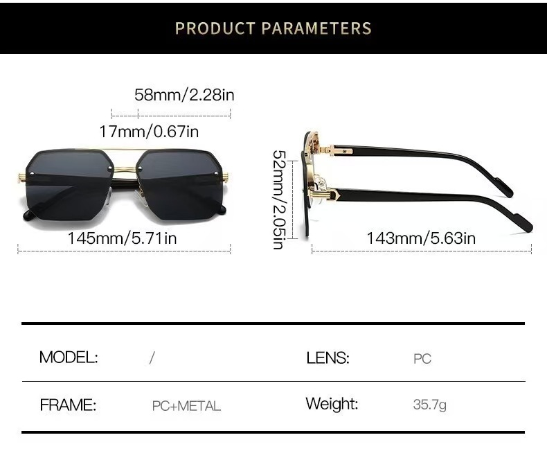 2025년 유럽과 미국의 인기 있는 맞춤형 심플 더블 빔 사각 선글라스 남성과 여성을 위한 하프 프레임 파일럿 패션 선글라스