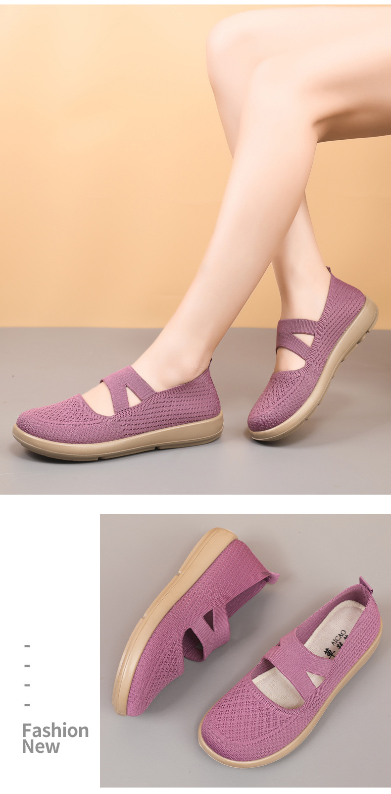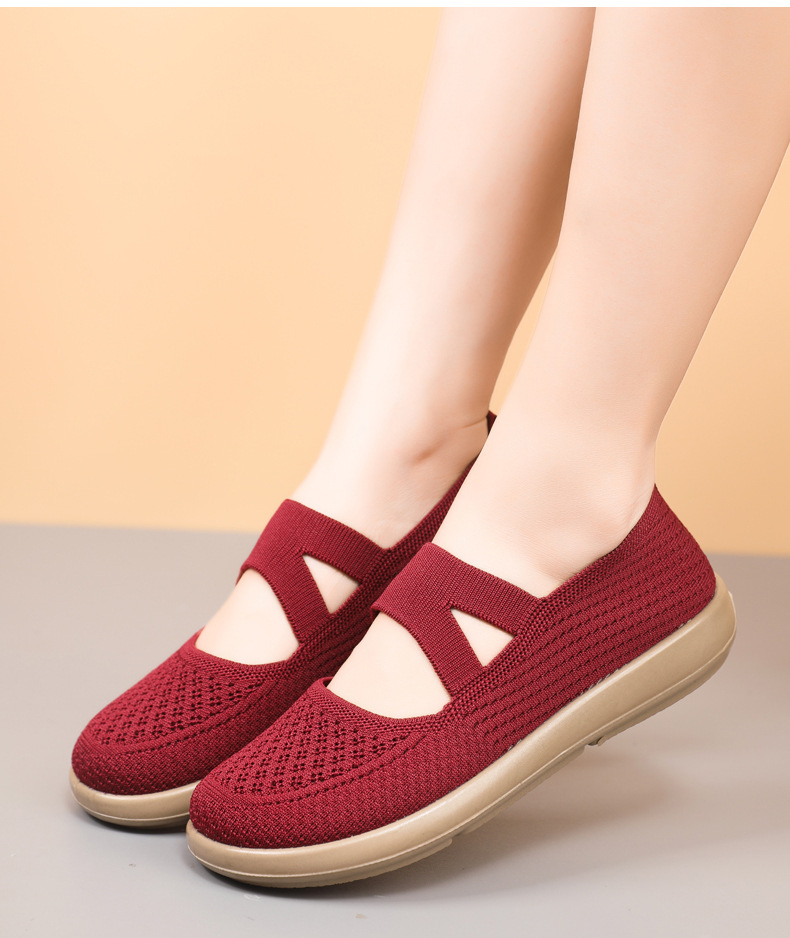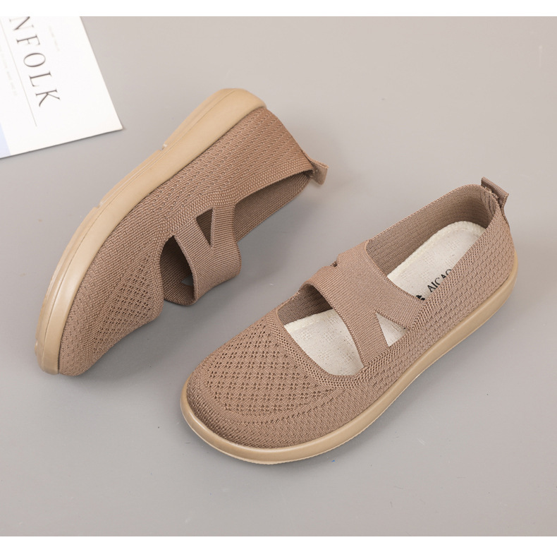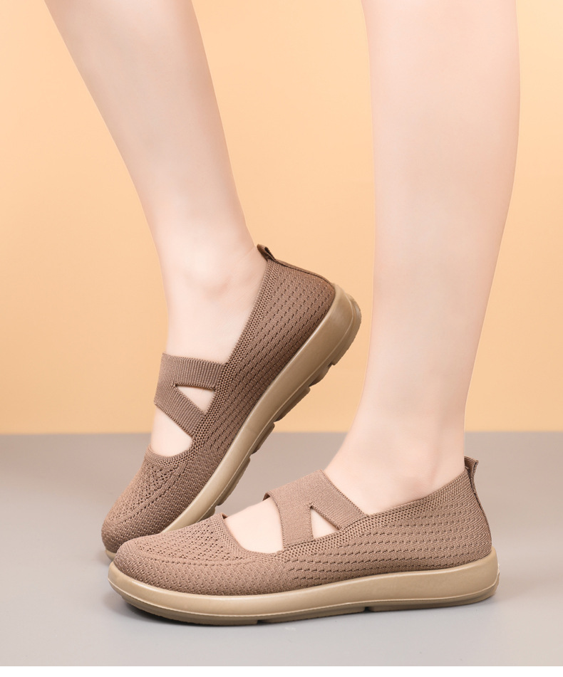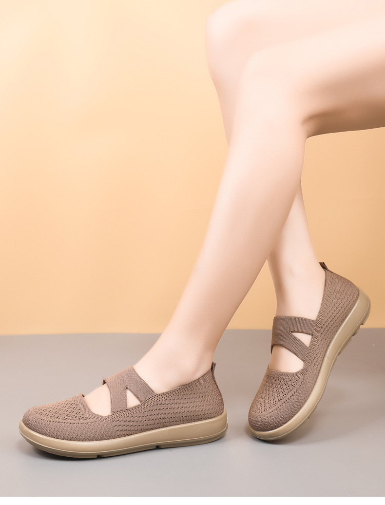 엄마 신발 2025 봄 여성의 새로운 패션 플라이 짠 신발 통기성 부드러운 단독 슬립 온 캐주얼 신발 여성을위한스토어 가기