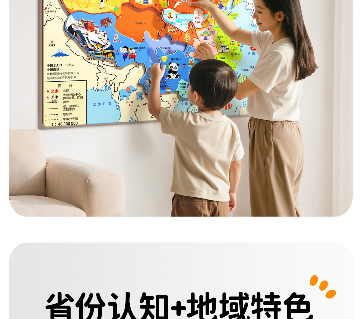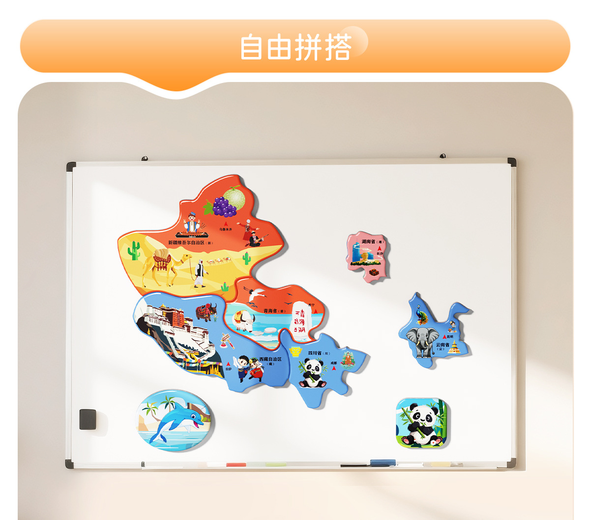 중국 지도 자성 소재는 벽에 걸 수 있습니다. 초등학생 및 중학생을 위한 디자인 교육 장난감 자기 흡입 세계 퍼즐 지리스토어 가기
