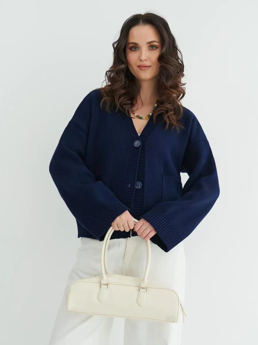 유럽과 미국의 V 넥 포켓 니트 카디건 2025 가을과 겨울 새로운 느슨한 부드러운 왁스 디자인 스웨터 코트 여성스토어 가기