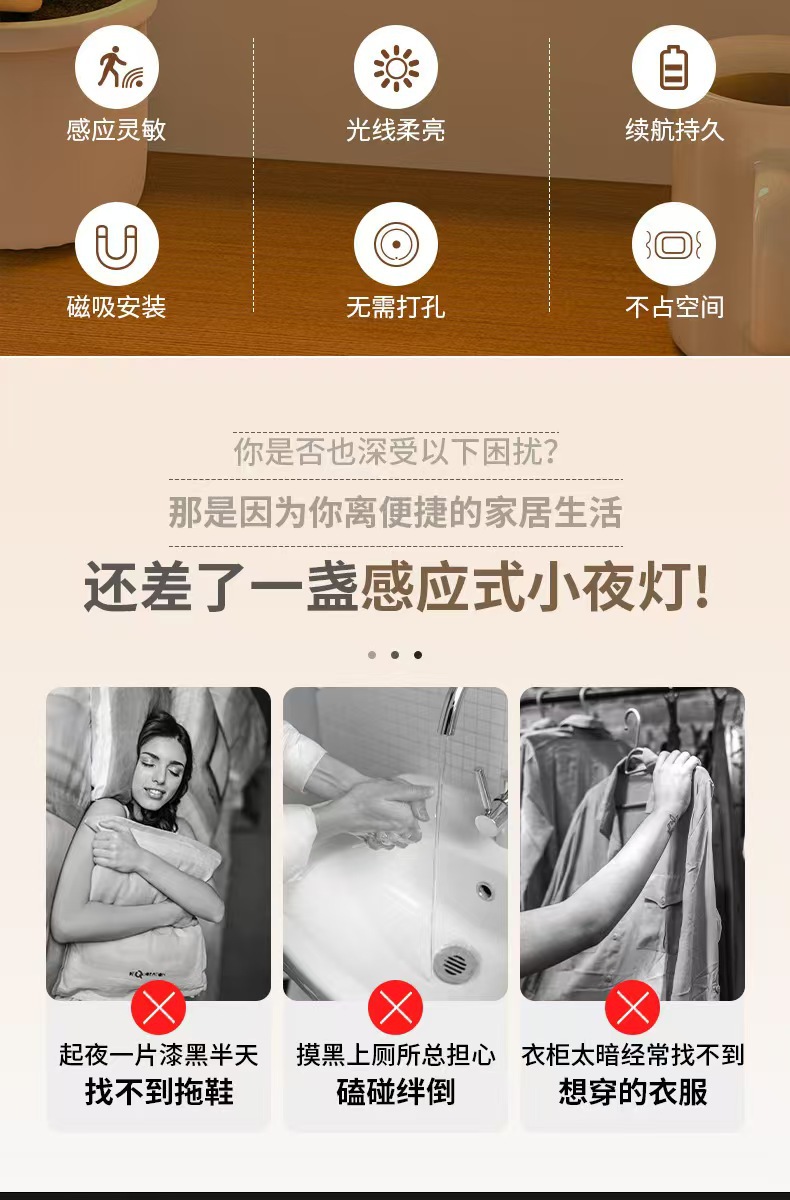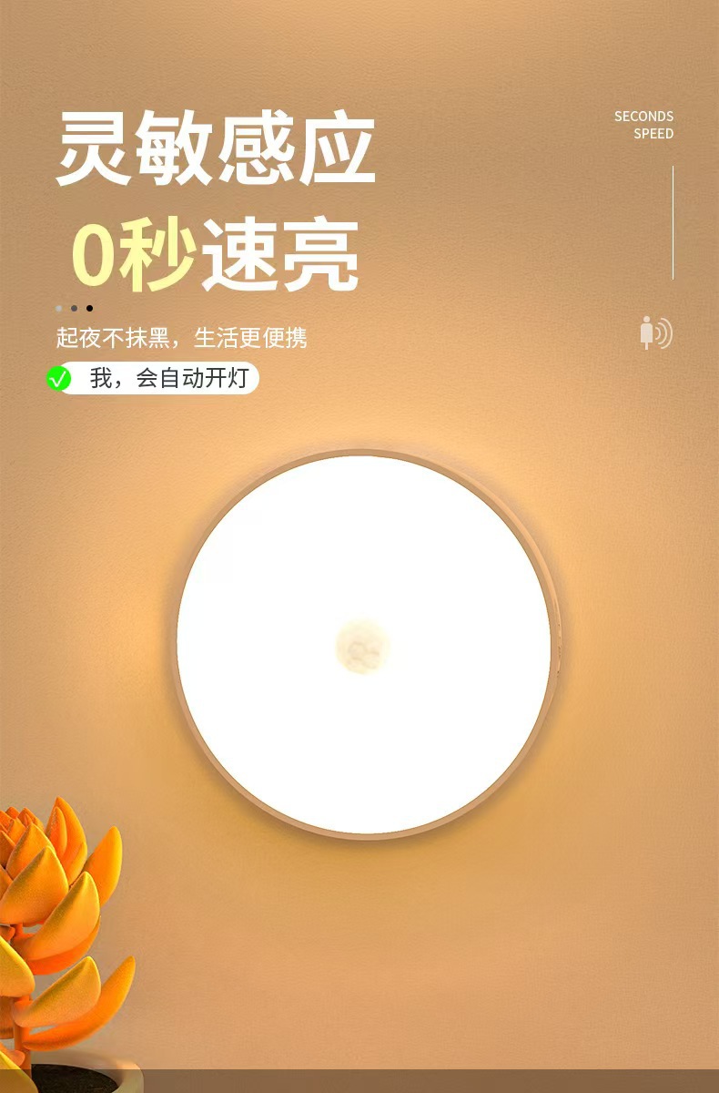 무선 스마트 인체 센서 램프 야간 가정용 통로 캐비닛 침실 수면 충전 LED 침대 옆 야간 조명