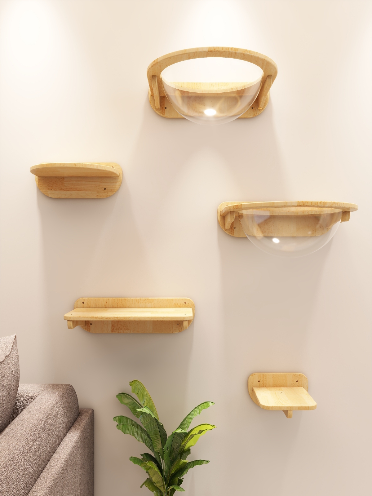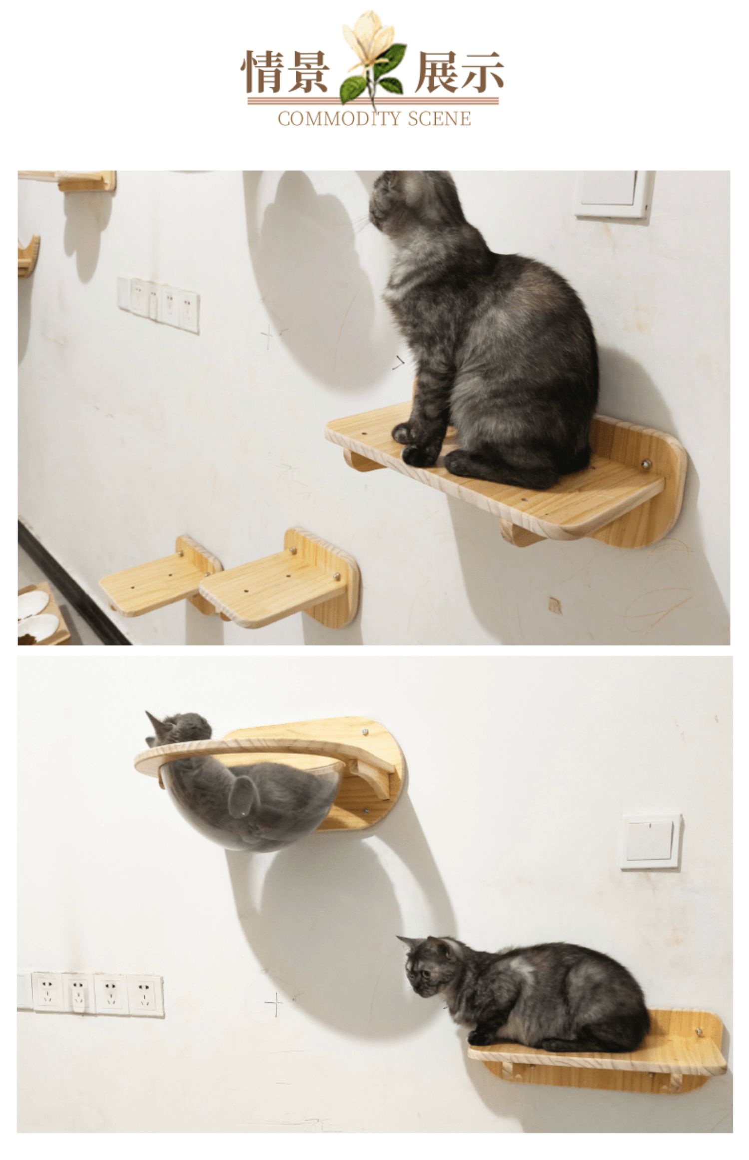단단한 나무로 만든 구멍이나 못이 없는 고양이 벽걸이형 우주 캡슐 둥지 고양이 클라이밍 프레임 점프 플랫폼 고양이 벽 해먹은 공간을 차지하지 않습니다.