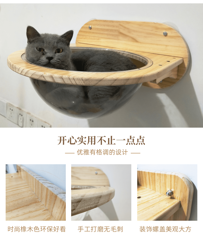 단단한 나무로 만든 구멍이나 못이 없는 고양이 벽걸이형 우주 캡슐 둥지 고양이 클라이밍 프레임 점프 플랫폼 고양이 벽 해먹은 공간을 차지하지 않습니다.스토어 가기
