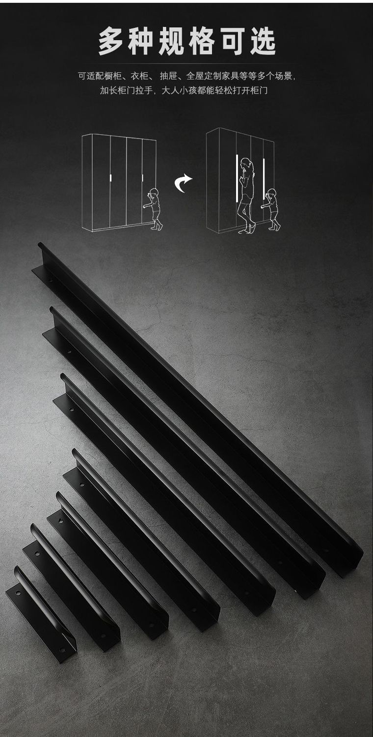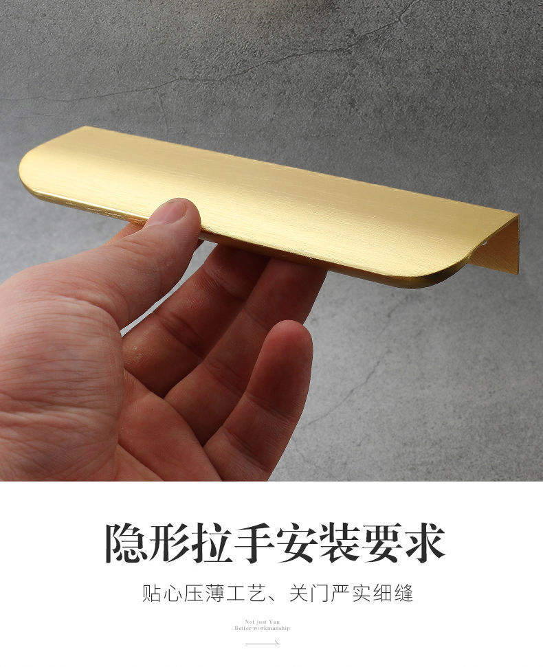 보이지 않는 손잡이, 검정색, 펀치 없음, 가벼운 고급 골드 서랍 숨겨진 손잡이, 간단한 옷장 문, 캐비닛 문 손잡이, 무역