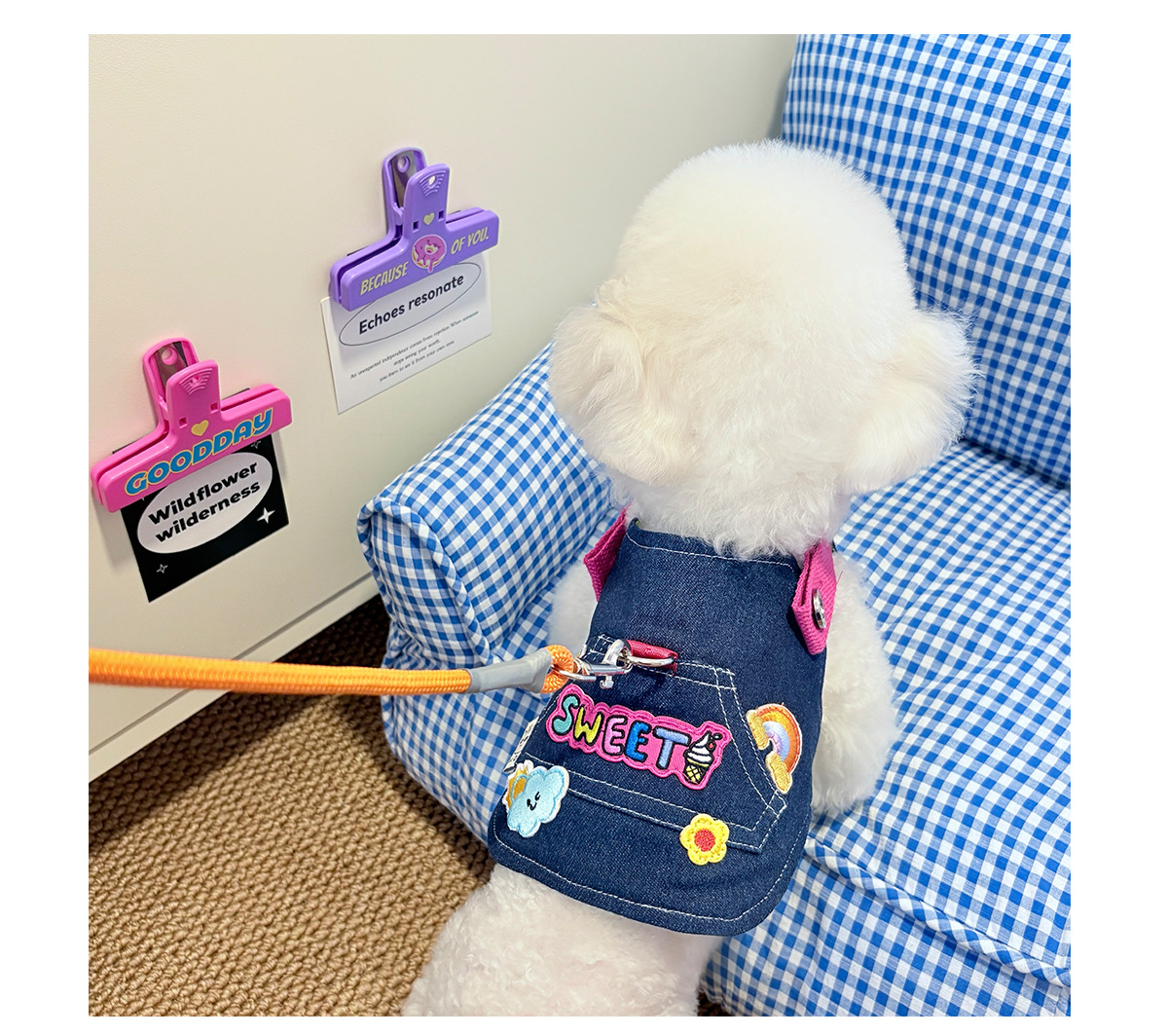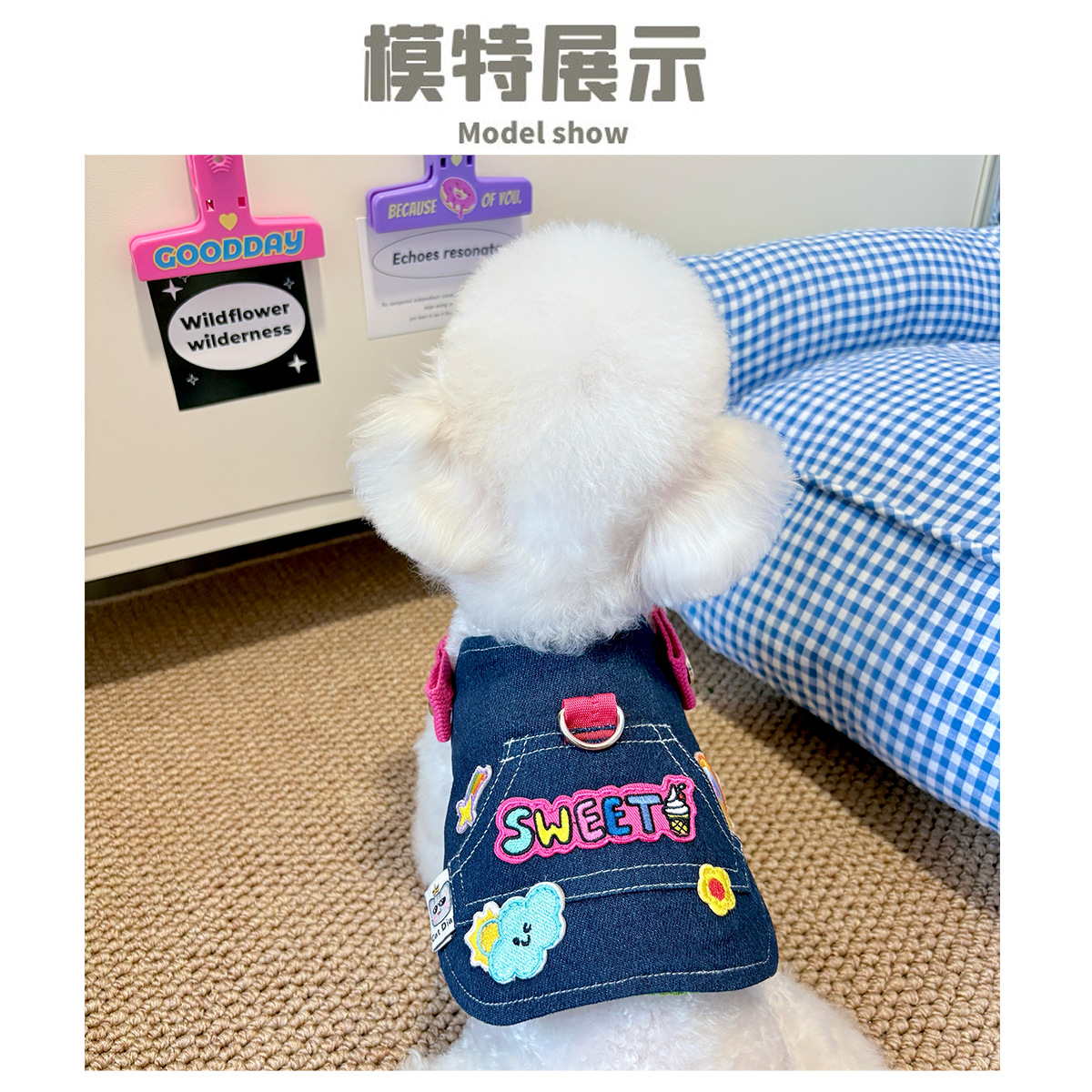 애완 동물 가죽끈 카우보이 도파민 하네스 고양이와 개 가죽끈 테디 비숑 슈나우저 범용 통기성스토어 가기