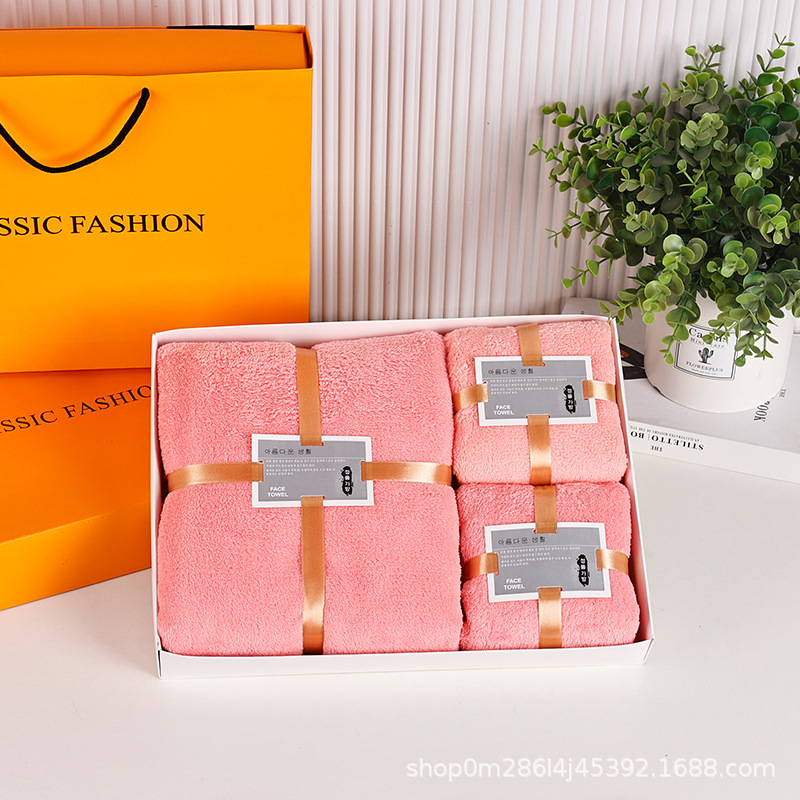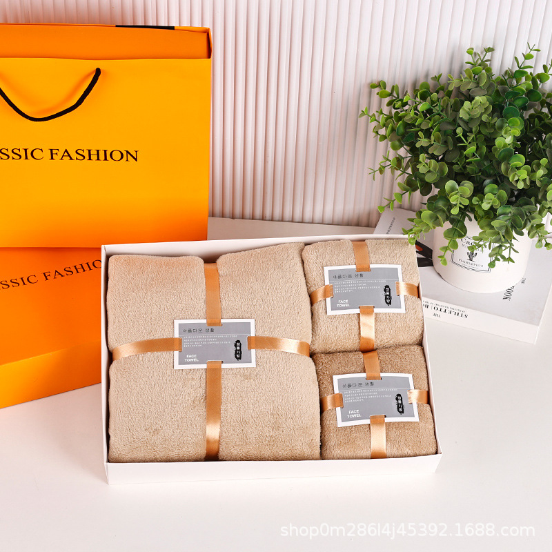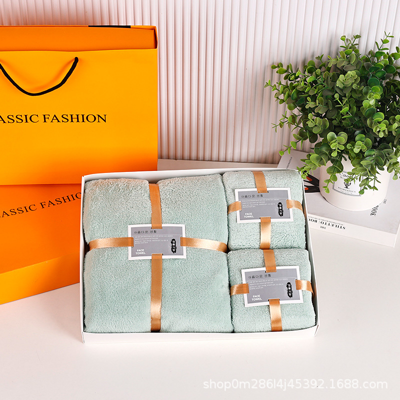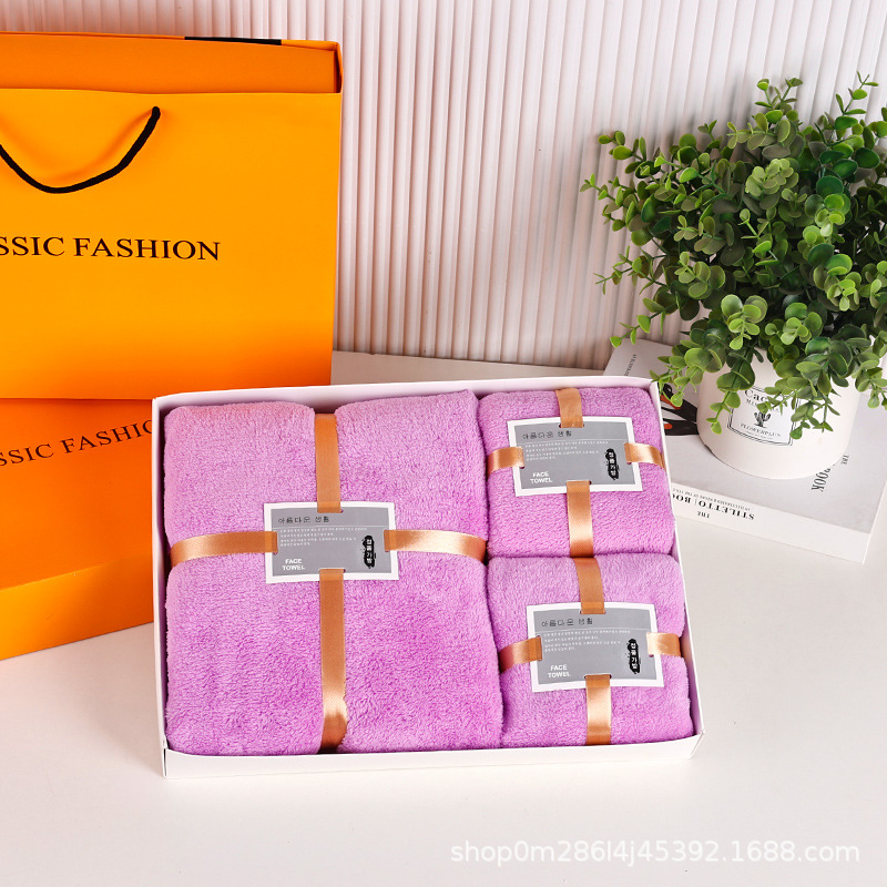 산호 벨벳 수건 목욕 수건 선물 상자 3 피스 세트 결혼식 보름달 오프닝 선물 회사 연례 축하 로고 선물스토어 가기