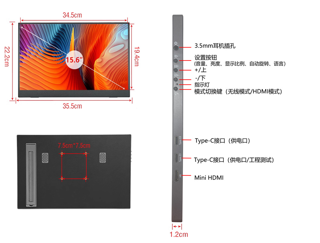 진정한 무선 휴대용 디스플레이 안드로이드 휴대폰 PC 공용 분할 화면 확장 라이브 방송 무선 화면 전송