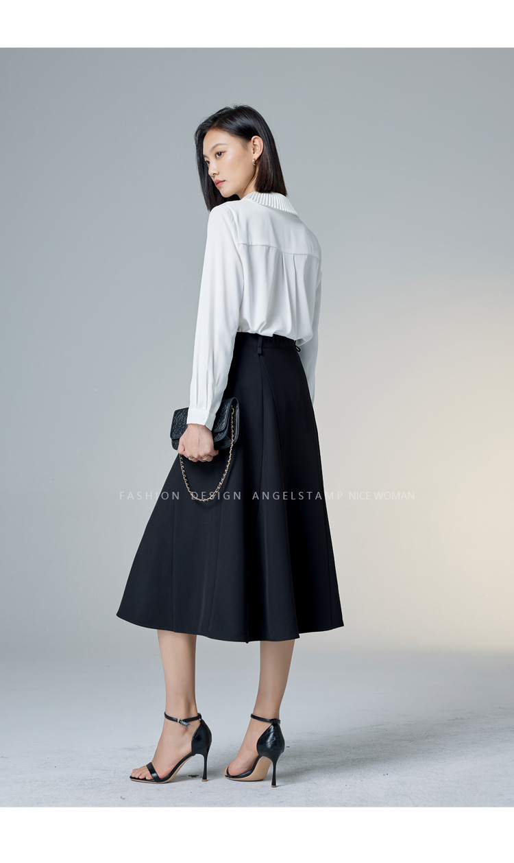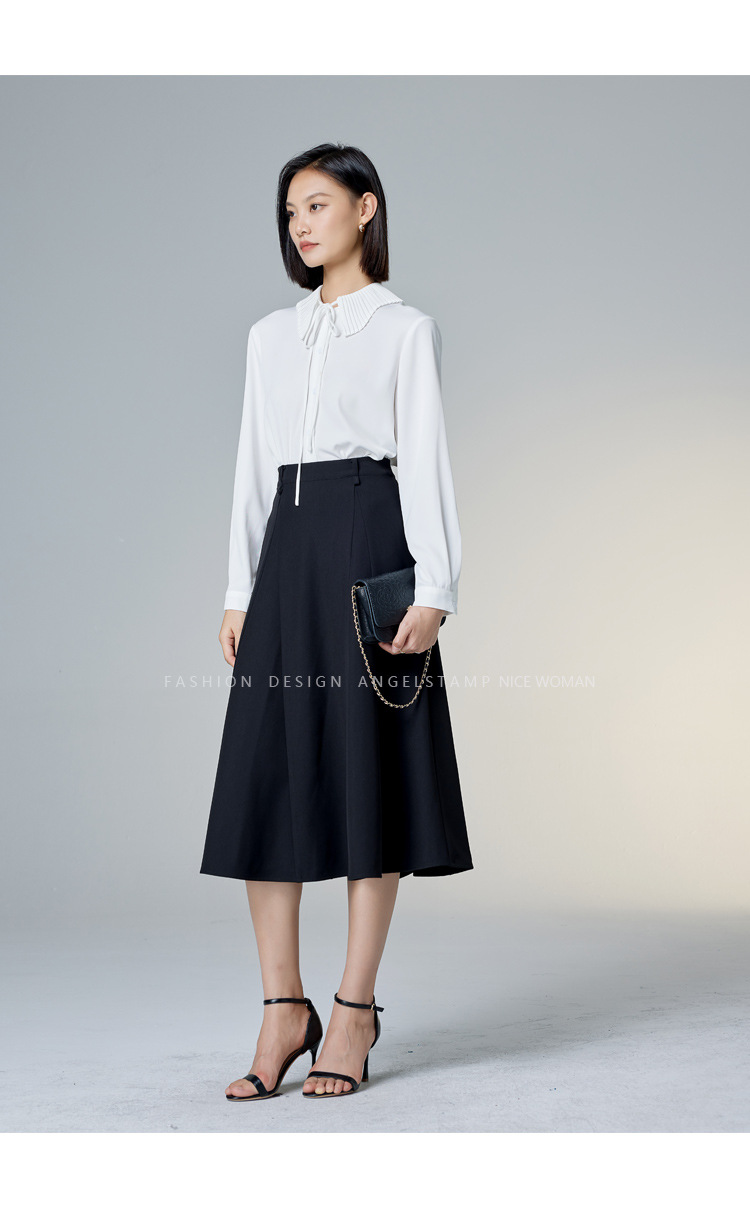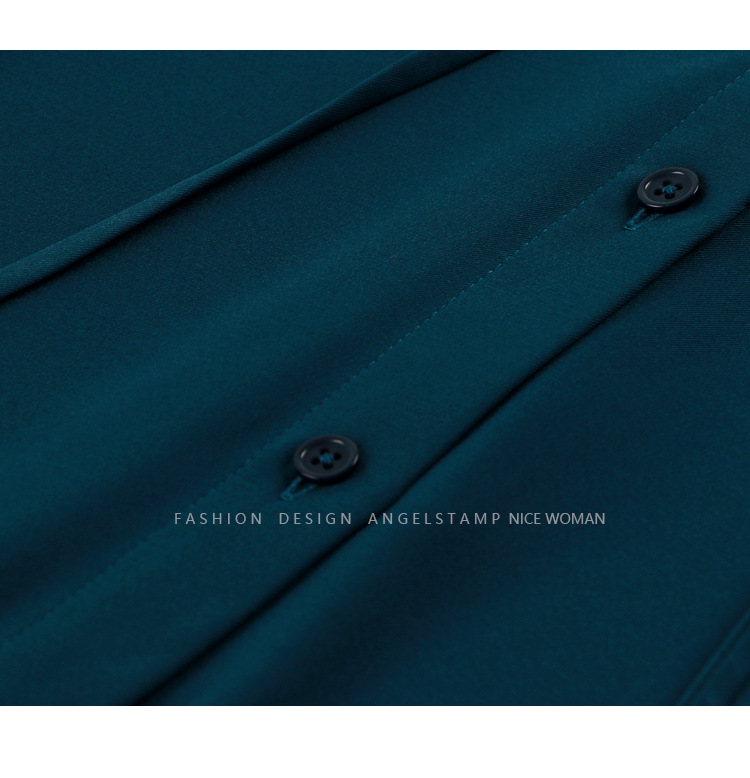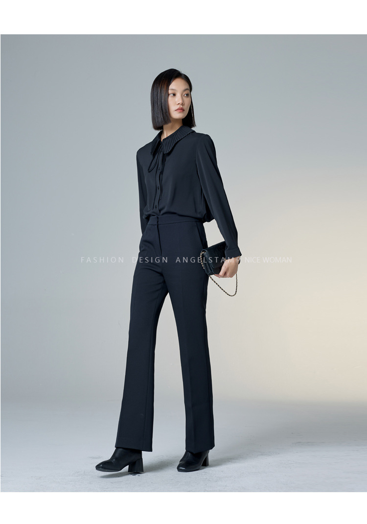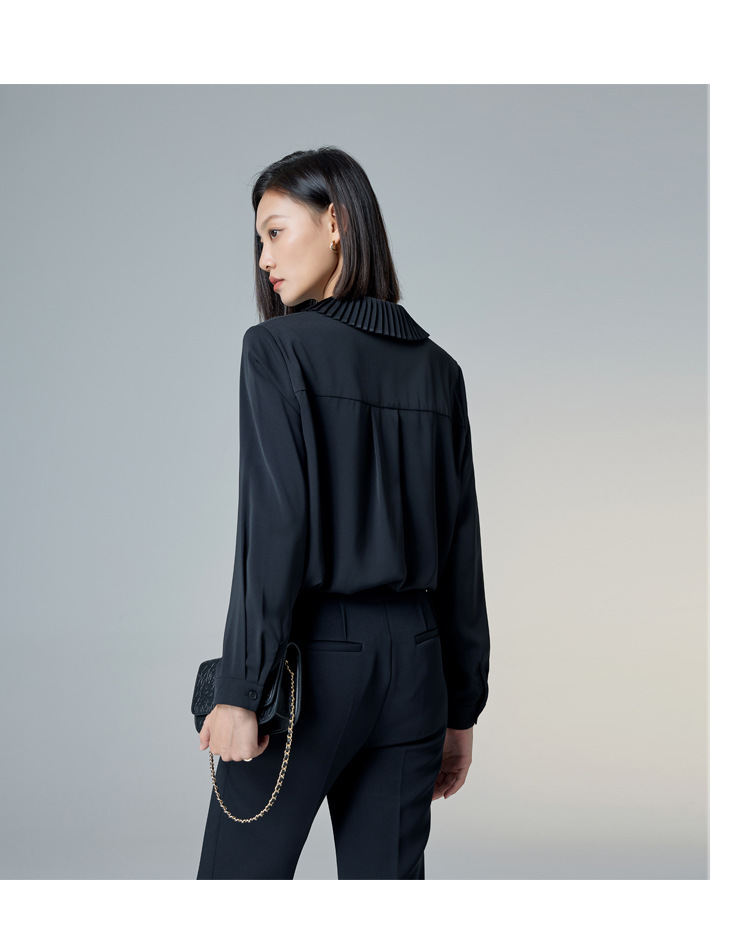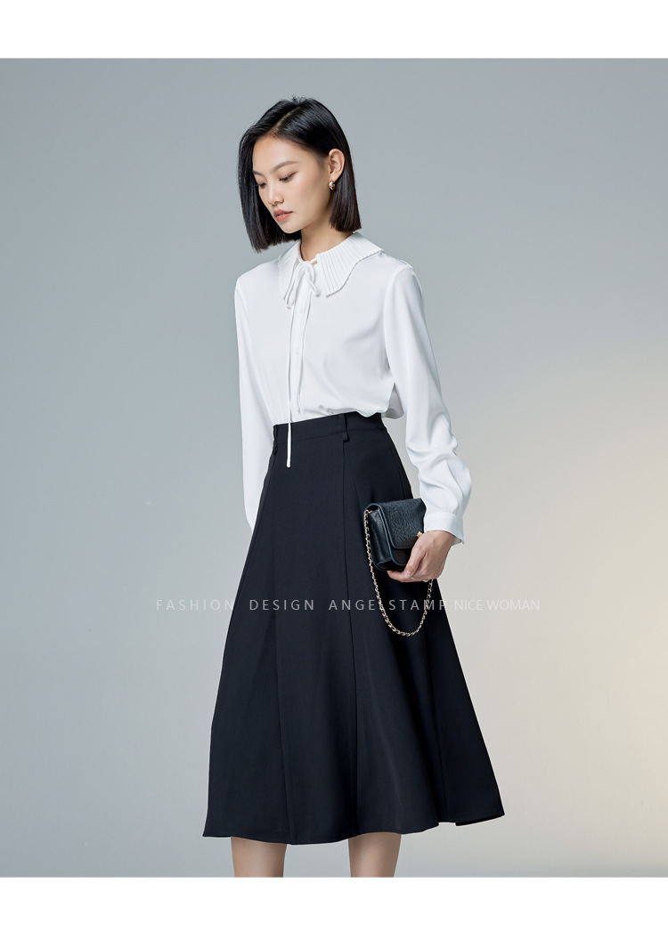 2025 새로운 틈새 디자인 불규칙한 오르간 칼라 레이스 업 공작 블루 긴팔 여성용 전문 셔츠