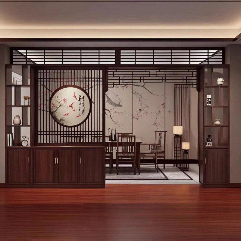 새로운 중국 스타일의 복스 단단한 나무 스크린 파티션 거실 마감 입구 캐비닛 입구 보구 랙 로비 입구 스크린