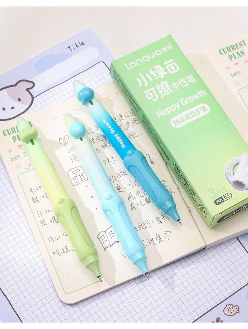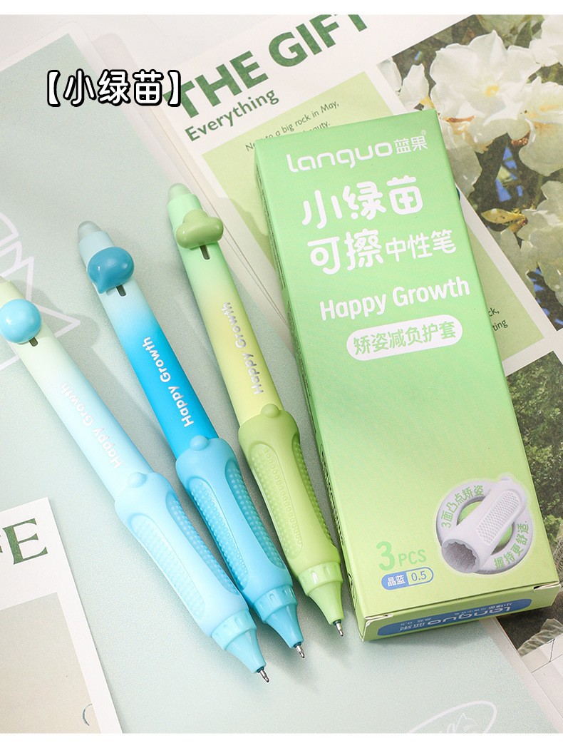 학생들을 위한 블루 과일 지울 수 있는 젤 펜, 귀엽고 멋진 0.5mm 열 감지 소프트 그립 자세 교정 st 지우개 펜스토어 가기