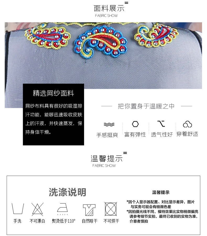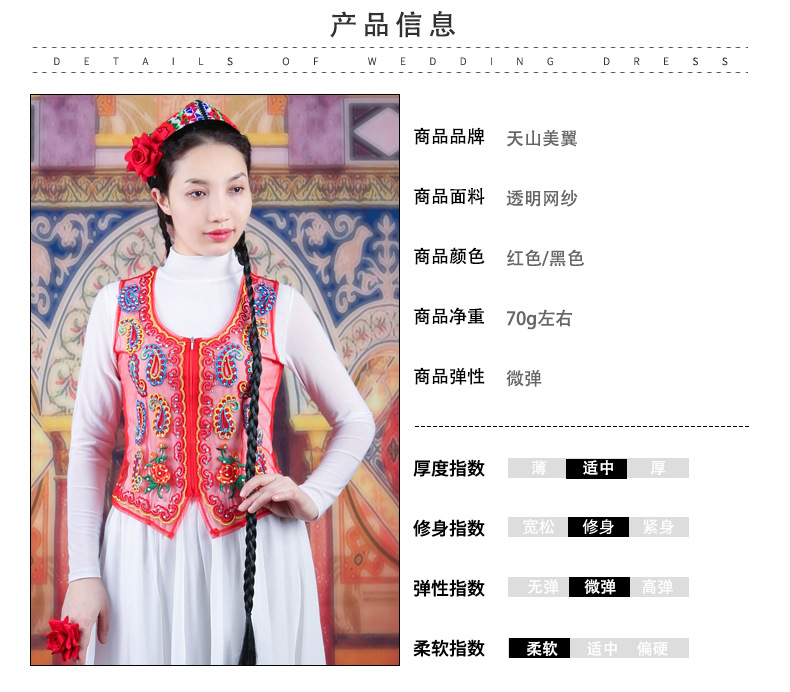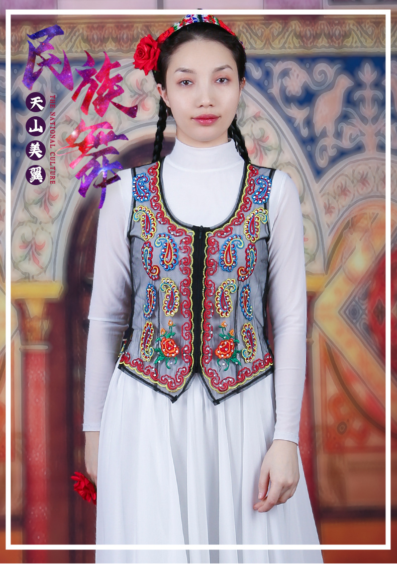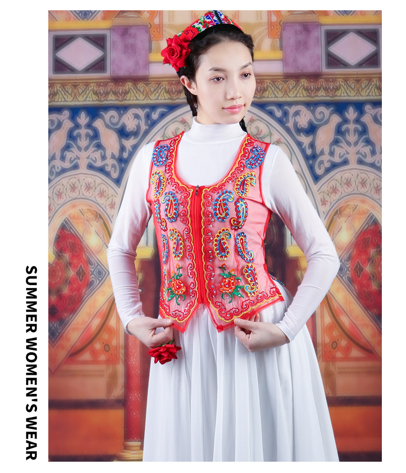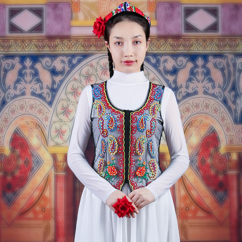 여성을위한 신장 댄스 조끼 2025 새로운 스타일 민족 스타일 스퀘어 댄스 의류 메쉬 수 놓은 조끼