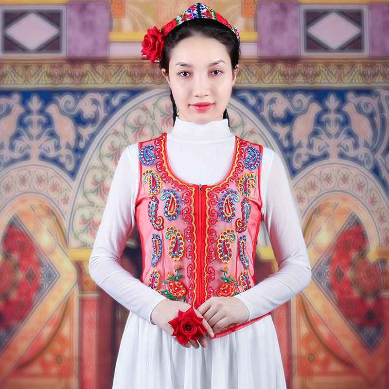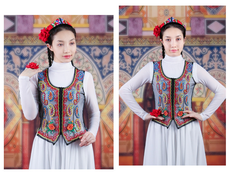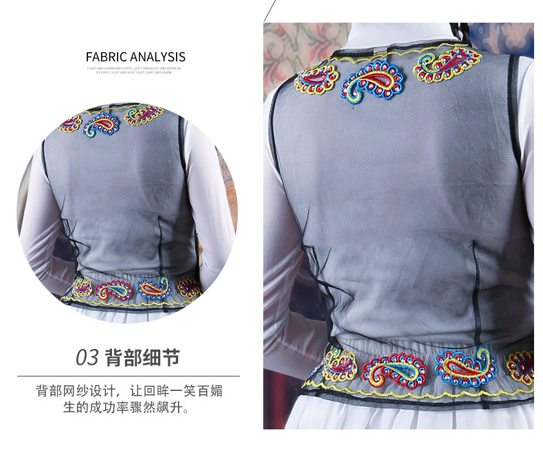 여성을위한 신장 댄스 조끼 2025 새로운 스타일 민족 스타일 스퀘어 댄스 의류 메쉬 수 놓은 조끼스토어 가기