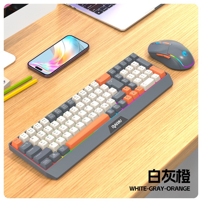 RAIKU Leikui R908 맞춤형 게임용 키보드 및 마우스 세트 3색 이중 모드 2.4G+Bluetooth 발광