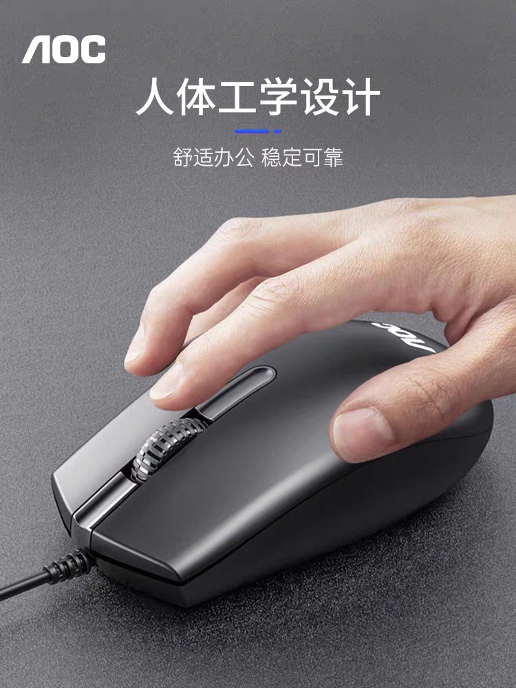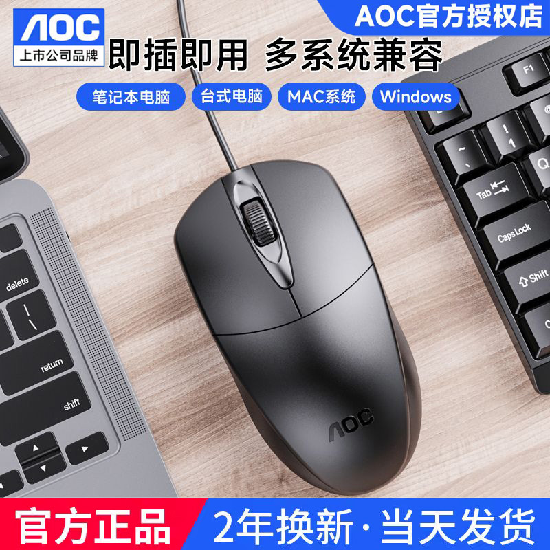 AOC 마우스 유선 무음 USB 홈 오피스 데스크탑 노트북 비즈니스 학생 e-스포츠 게임 cfcs스토어 가기