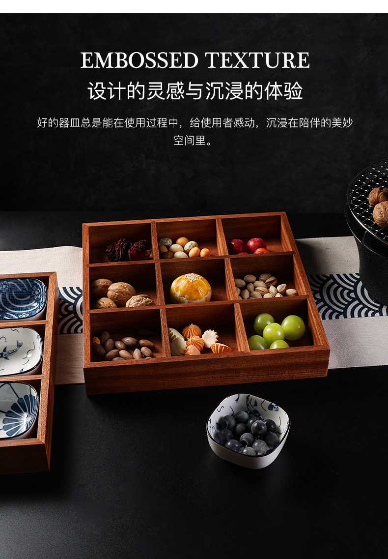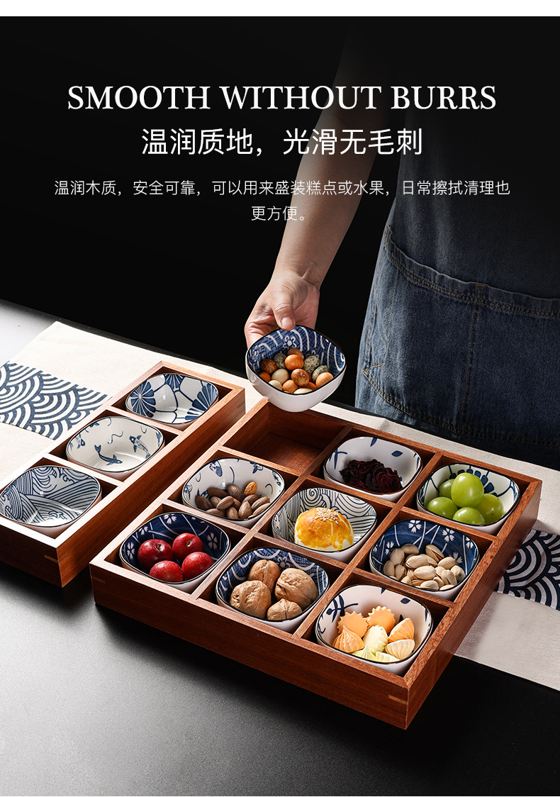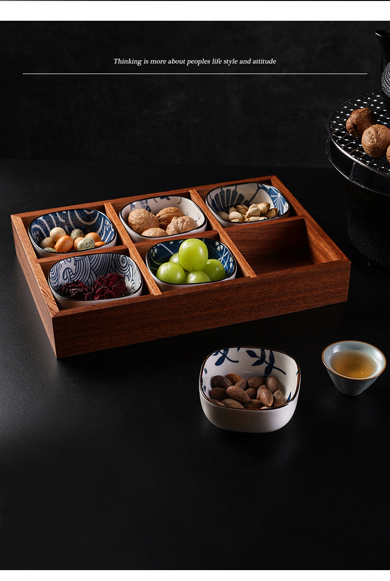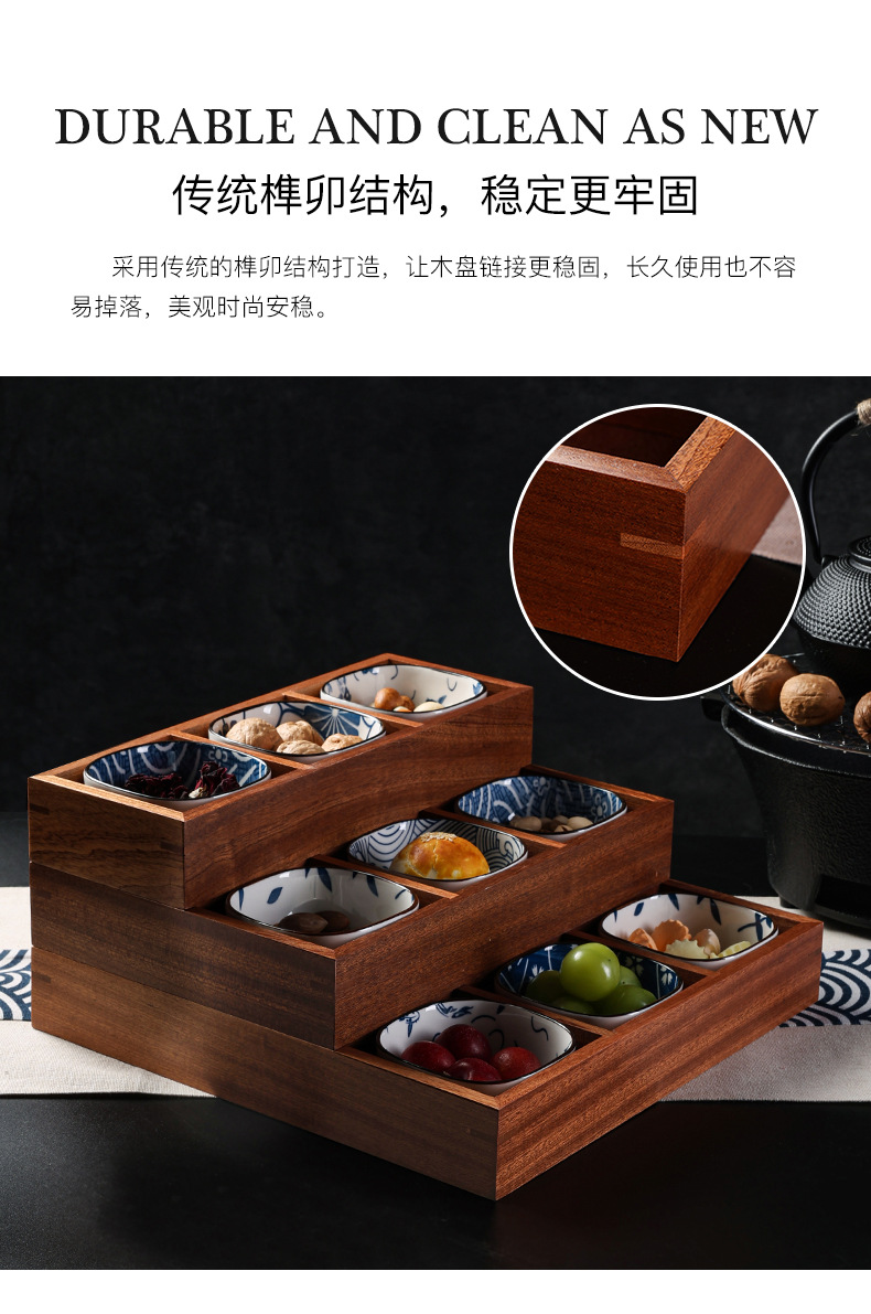 인터넷 연예인 Jiugongge 트레이 단단한 나무 건조 과일 트레이 차 과일 스낵 서빙 최고의 선택