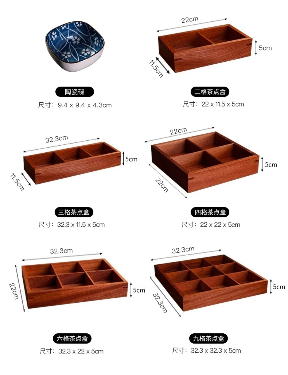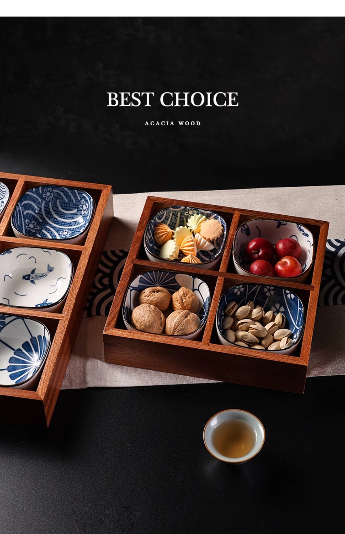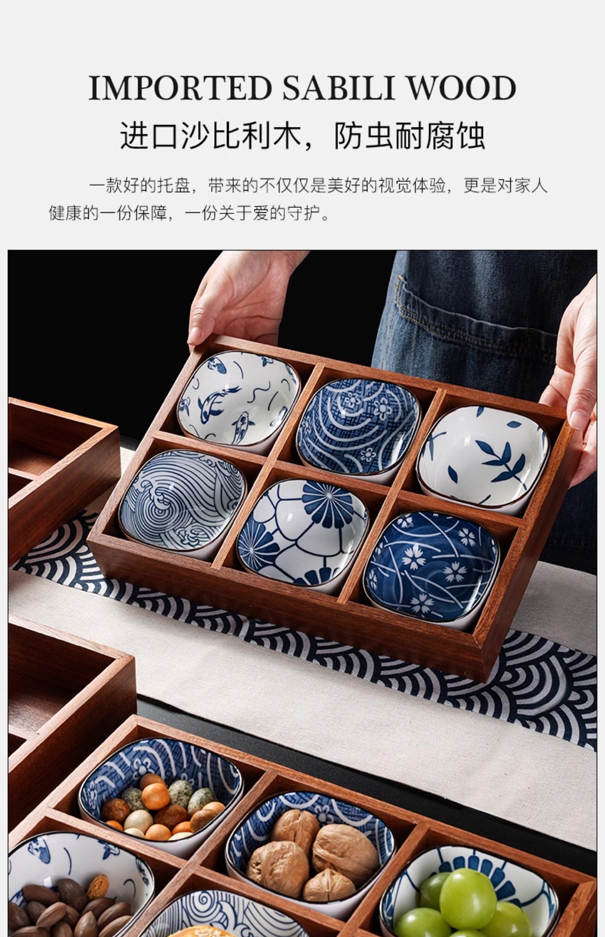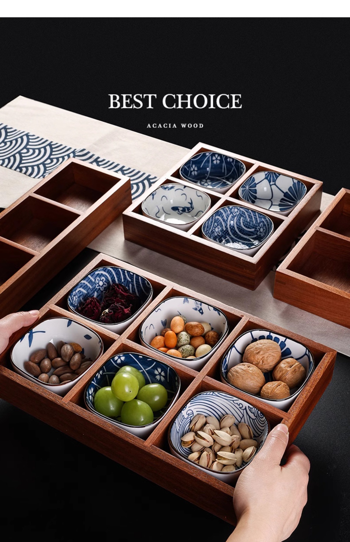 인터넷 연예인 Jiugongge 트레이 단단한 나무 건조 과일 트레이 차 과일 스낵 서빙 최고의 선택