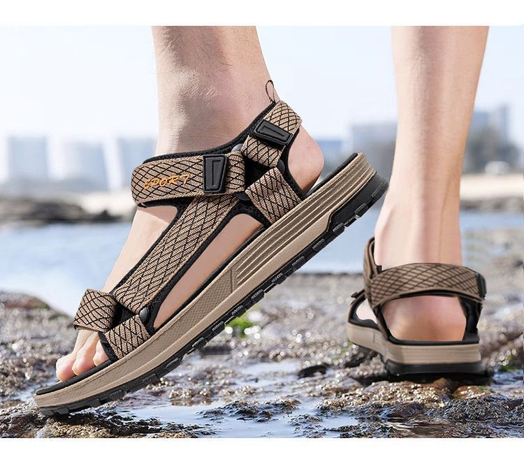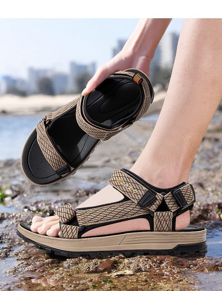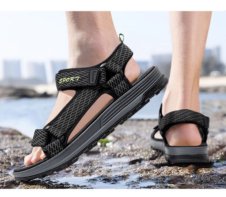 대외 무역 컷 라벨 심플하고 패셔너블한 여름 남성용 대형 샌들 초경량 두꺼운 밑창 편안한 벨크로 스포츠 비치 슈즈