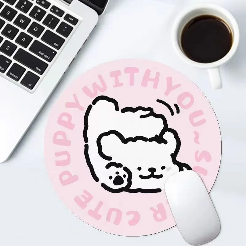 귀여운 라인 강아지 마우스 패드 소녀 컴퓨터 사무실 e-스포츠 마우스 패드 작은 라운드 인터넷 연예인 책상 패드