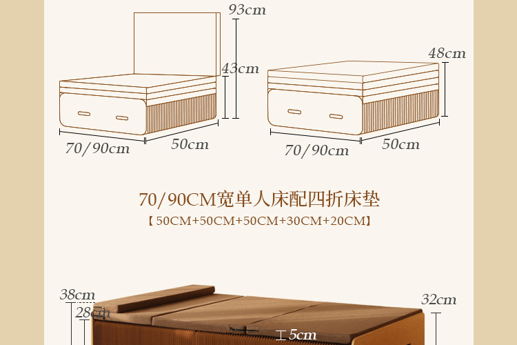 18종 종이접이식 침대, 점심시간, 1인용 다기능 소파베드, 사무실 및 가정용 겸용, 성인용 소형 숨김 침대
