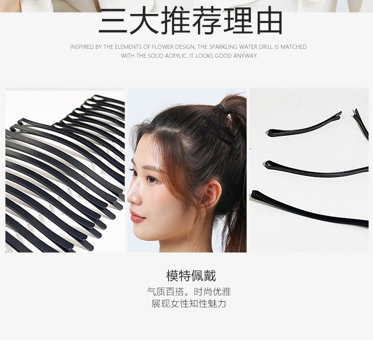 여성용 대형 검정색 헤어 클립, 곡선형 두꺼운 작은 검정색 클립, 성인용 앞머리 클립, 사이드 클립, 헤드웨어