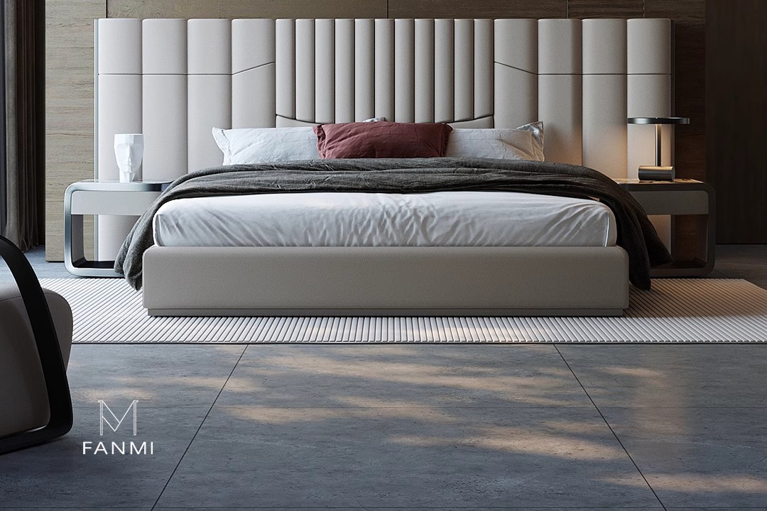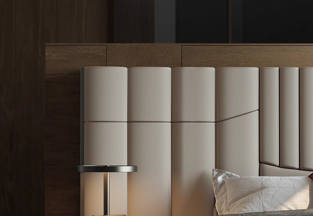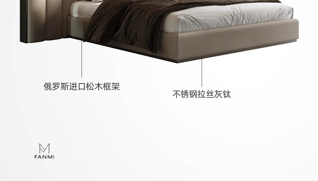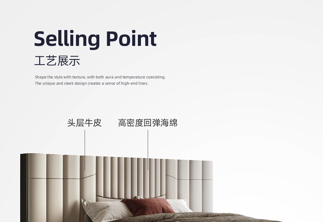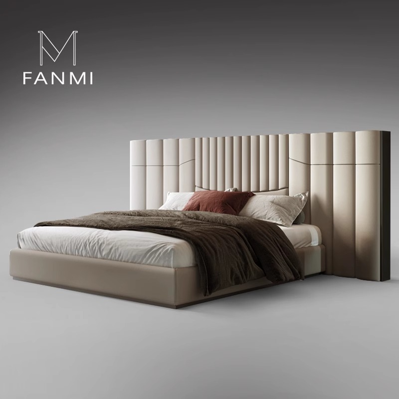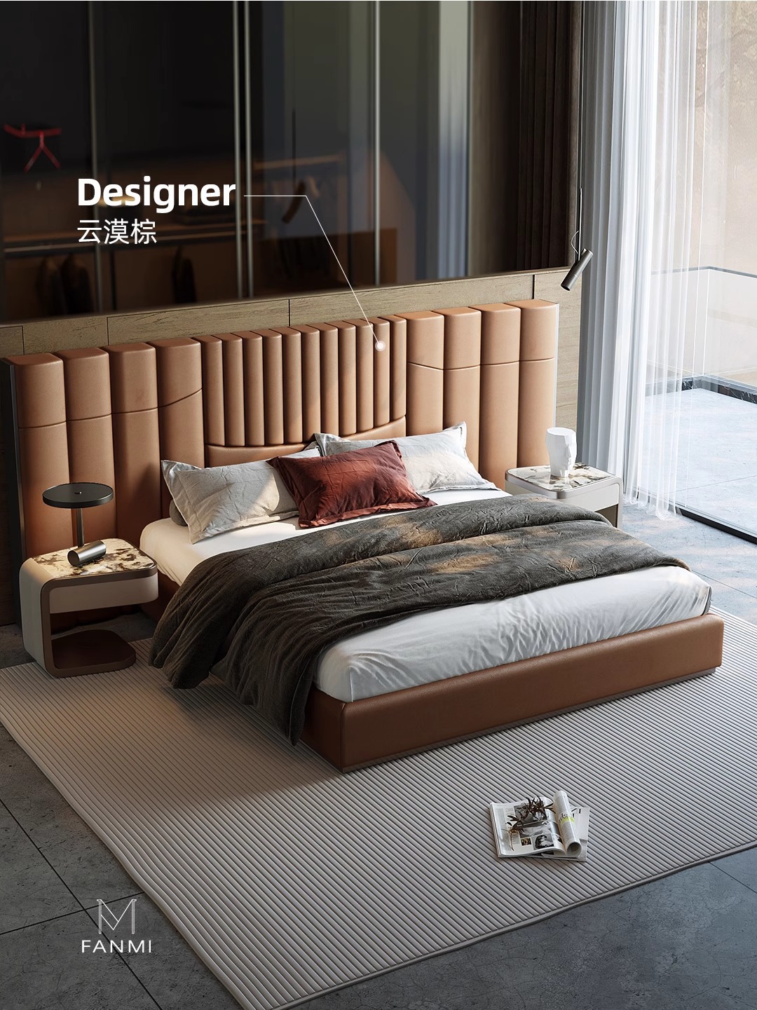이탈리아 고급 1층 소가죽 침대, 고급스러운 대형 평면 빌라 마스터 침실, 확장 침대 스크린 등받이, 더블 가죽 침대