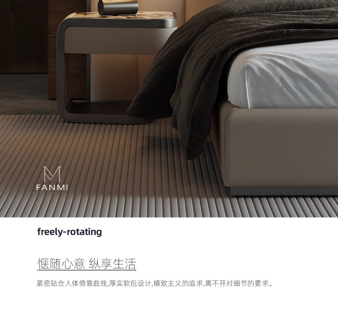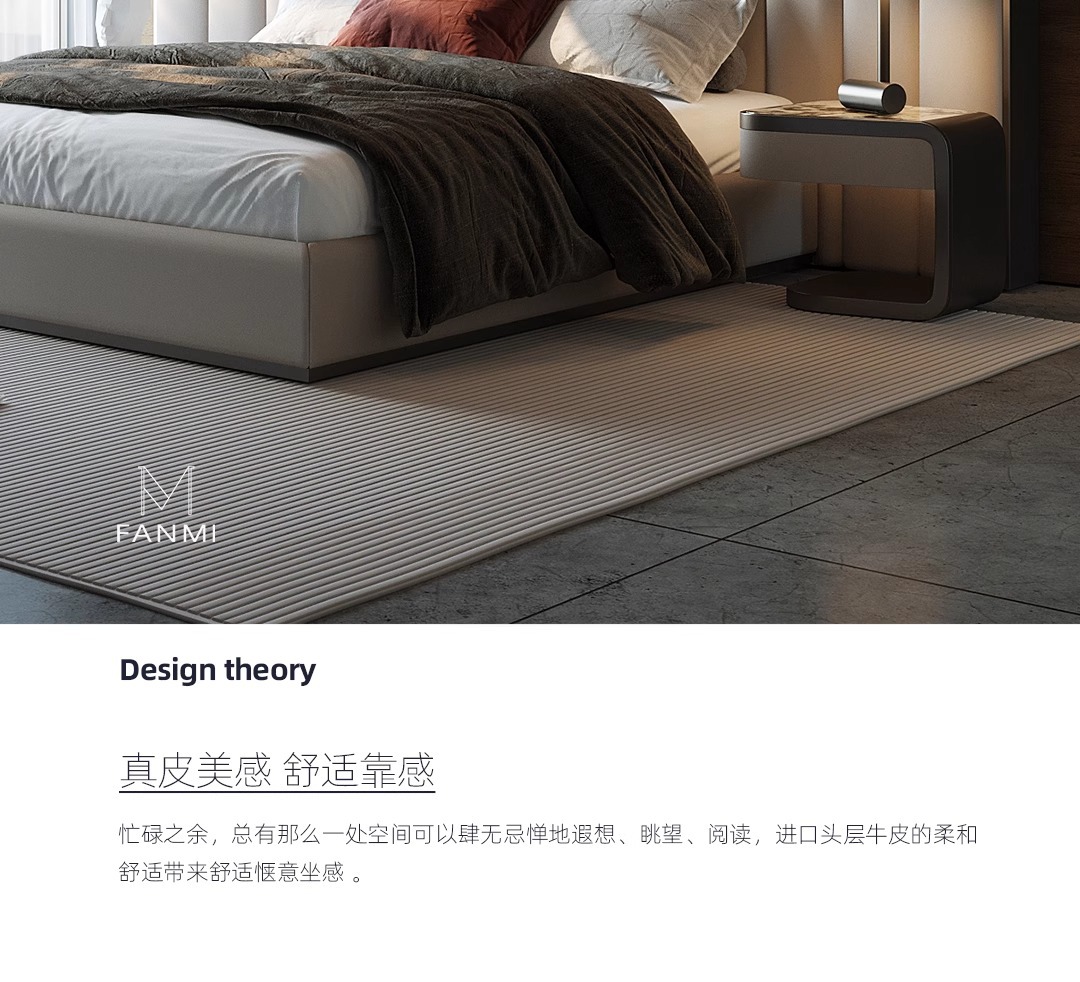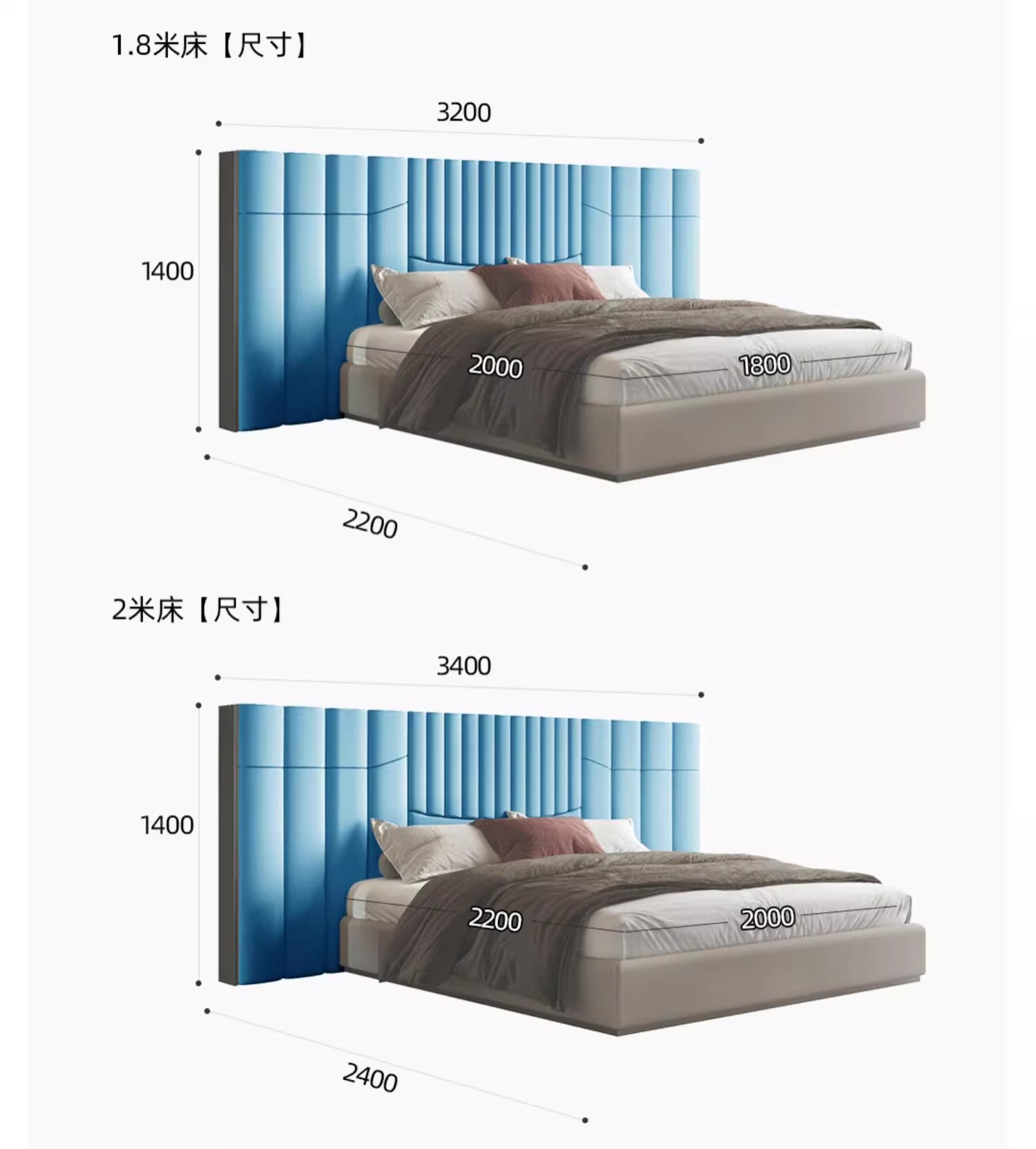 이탈리아 고급 1층 소가죽 침대, 고급스러운 대형 평면 빌라 마스터 침실, 확장 침대 스크린 등받이, 더블 가죽 침대스토어 가기