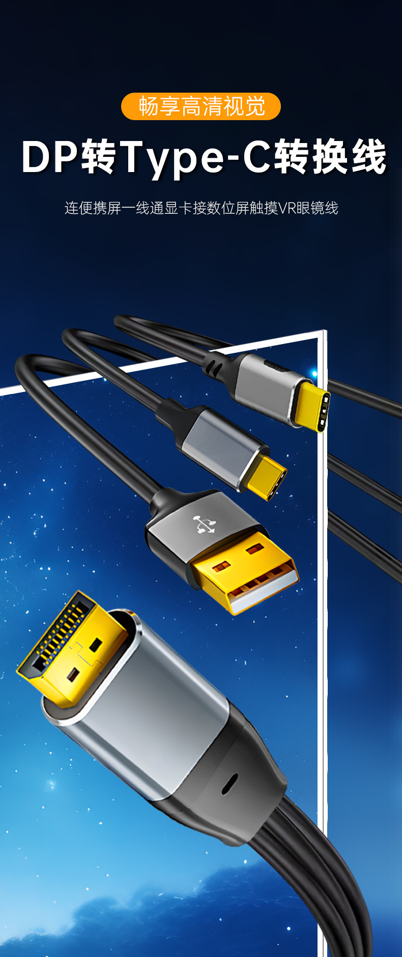 Dp-typec 신호 반전 케이블 usb 전원 공급 장치 8K 고화질 60hz 컴퓨터 프로젝션 스크린 비디오 변환 케이블스토어 가기