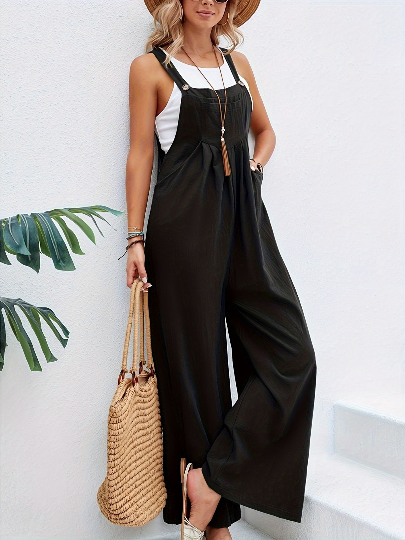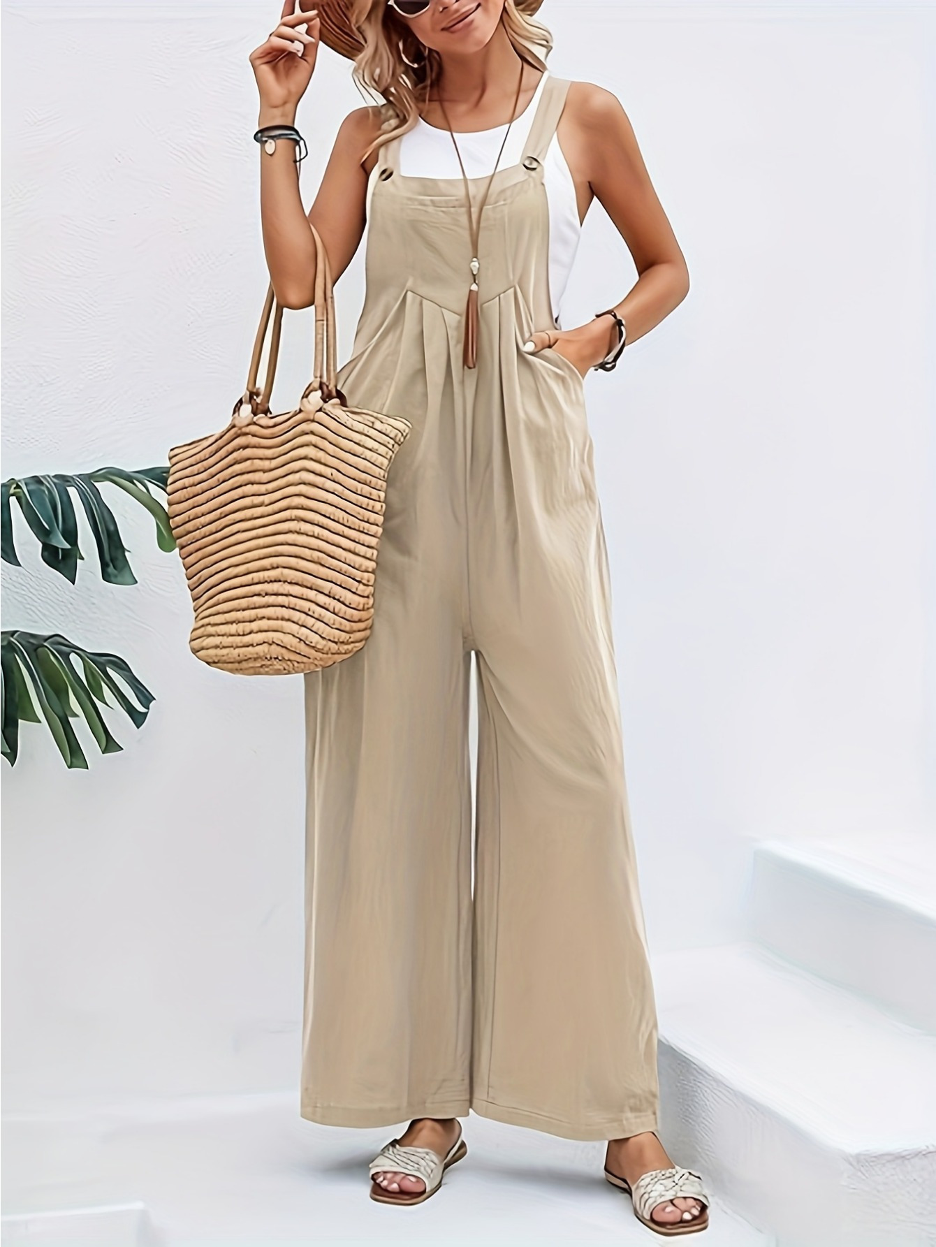 Effortsly Chic 와이드 레그 점프수트 루즈핏 포켓
